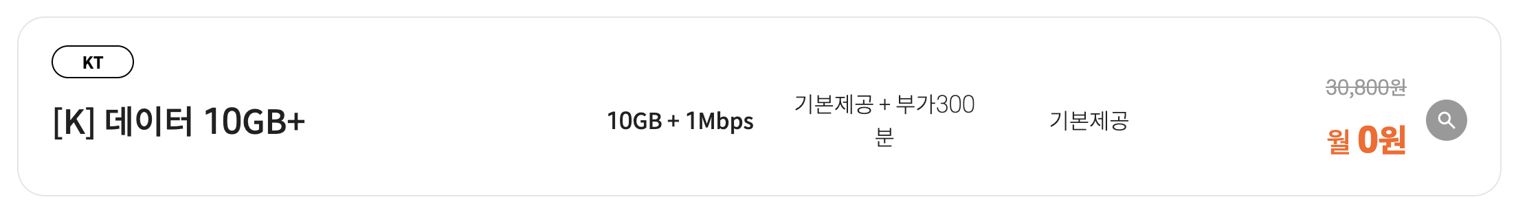 - 해외에서 귀국으로 인한 한국에서 사용할 요금제로 변경 > 월 30,800원