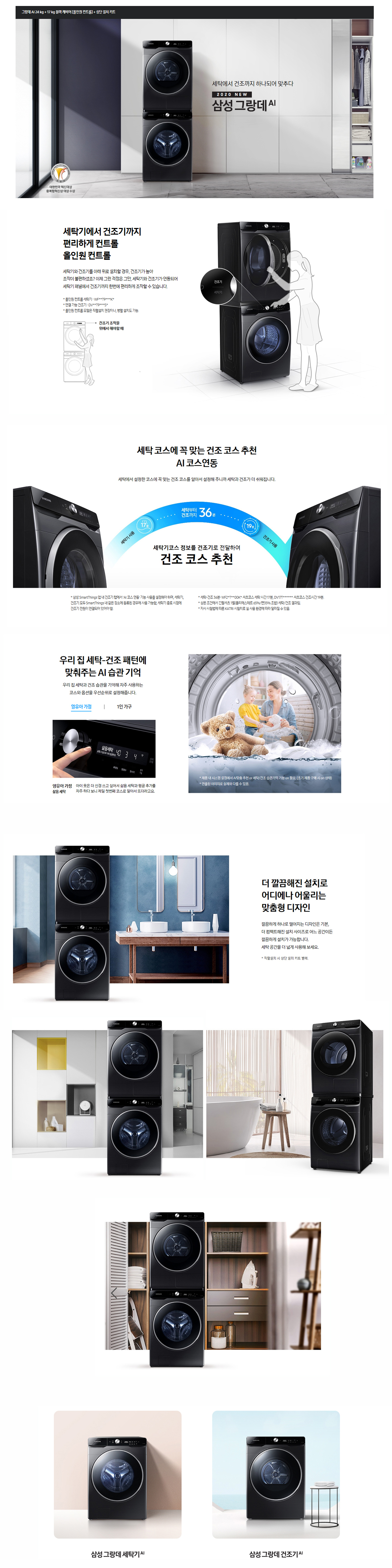 [올인원컨트롤] 그랑데 AI 24kg + 16kg 블랙케비어 + 상단설치키트 [WF24T9500KV6T]