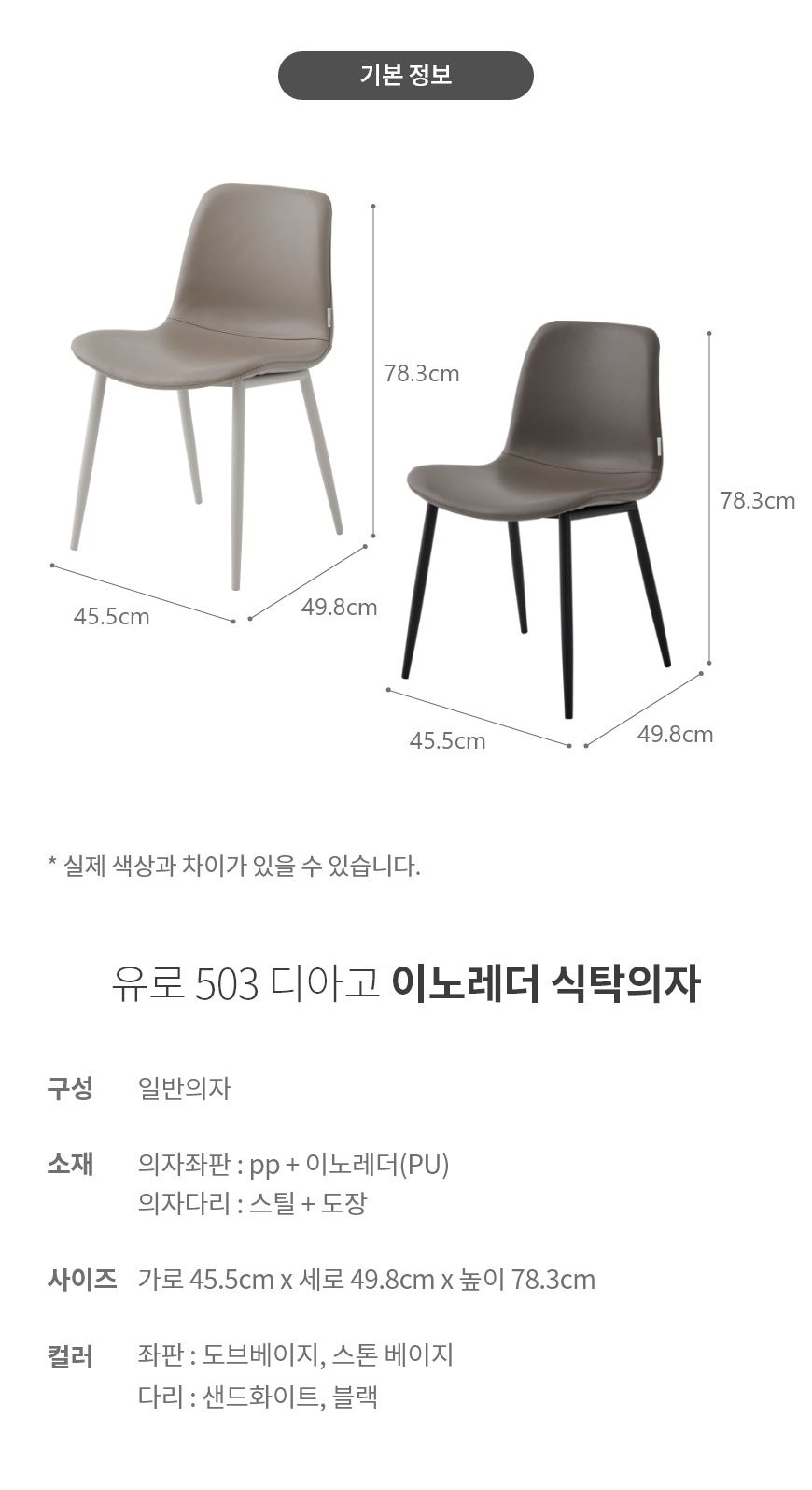 품명#1: 한샘매장가구 유로 503 디아고 이노레더 식탁의자, 의자 컬러:스톤베이지 / 다릿발 컬러:블랙 / 개수:2개입