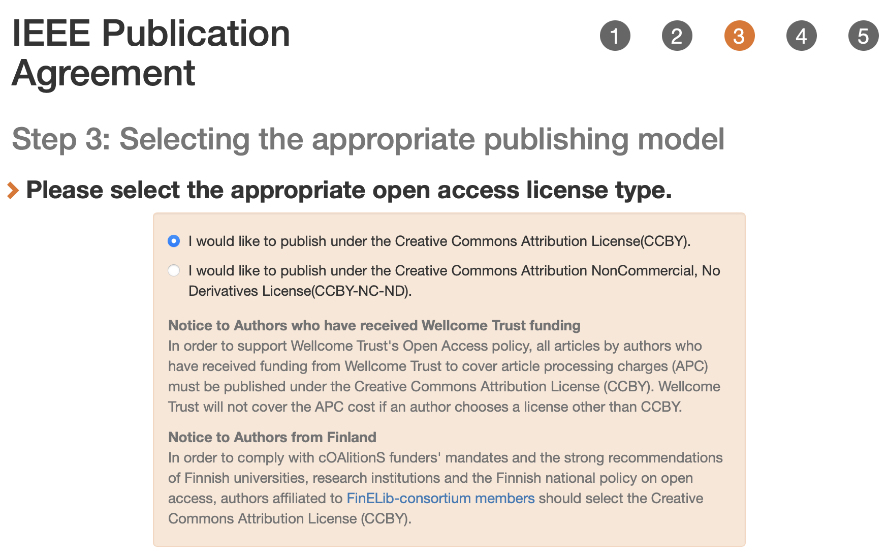IEEE Author Gateway에서 CpoyRight를 Transfer하는 과정에는 다음과 같이 CCBY와 CCBY-NC-ND중 하나를 선택해야 한다.