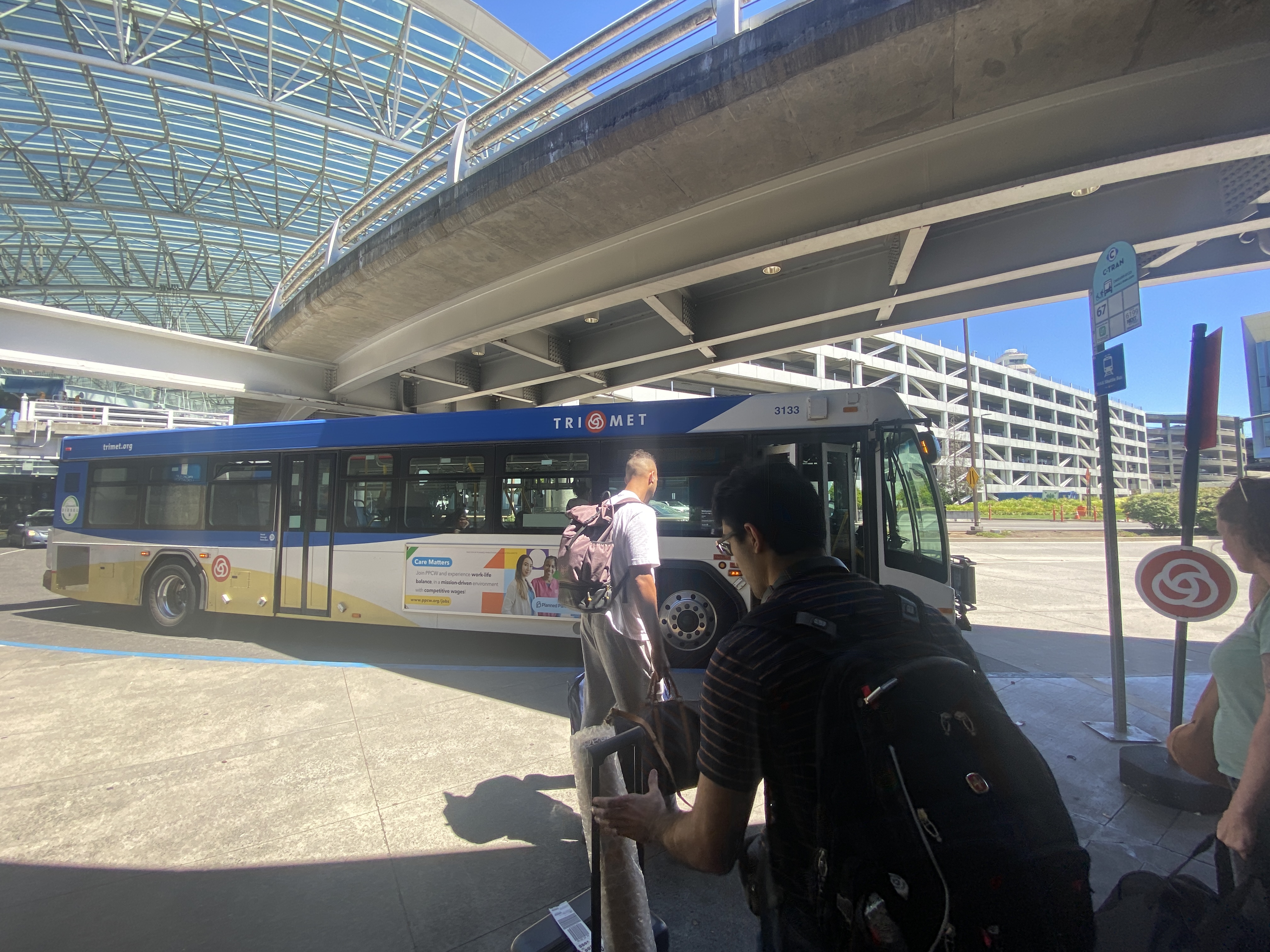 혼자서 이동한 거라 우버를 부르진않고, 포틀랜드 다운타운에 위치한 The Paramount Hotel로 이동하기 위해 일단 1번 Gate앞에서 'Max Red Line Shuttle'을 타고 Gateway Transit Center로 있다.