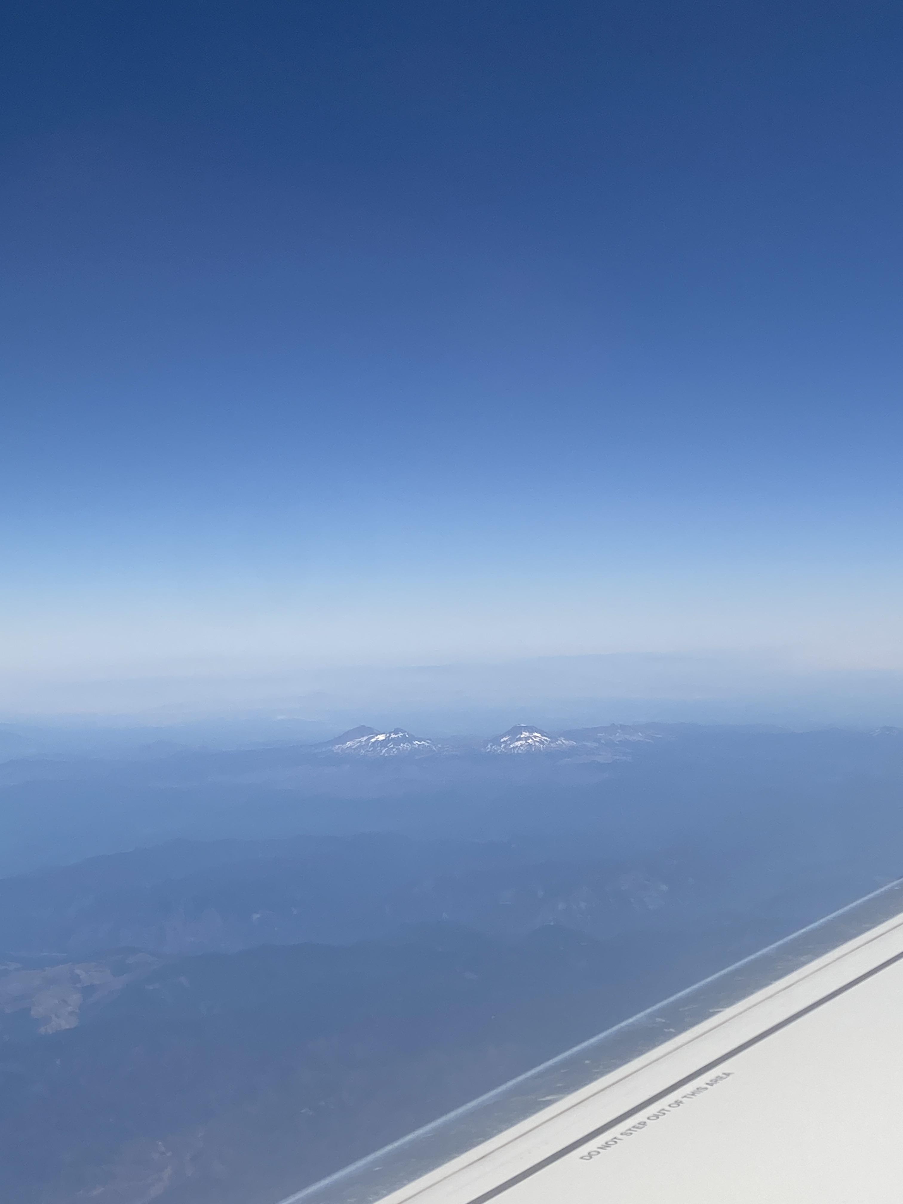 이륙후 한참을 가서 포틀랜드에 다 되어가자 승무원 아줌마가 창밖에 보이는 산이 해발 몇 미터고 스키장이 있고 하면서 설명을 막 하길래 좌석 2개가 빈 자리로 가서 사진을 찍었다. 쌍둥이처럼 2개의 산이 있고 위에 눈이 쌓여 있는데, 구글지도를 보니 North Sister와 South Sister 산인 듯하다.