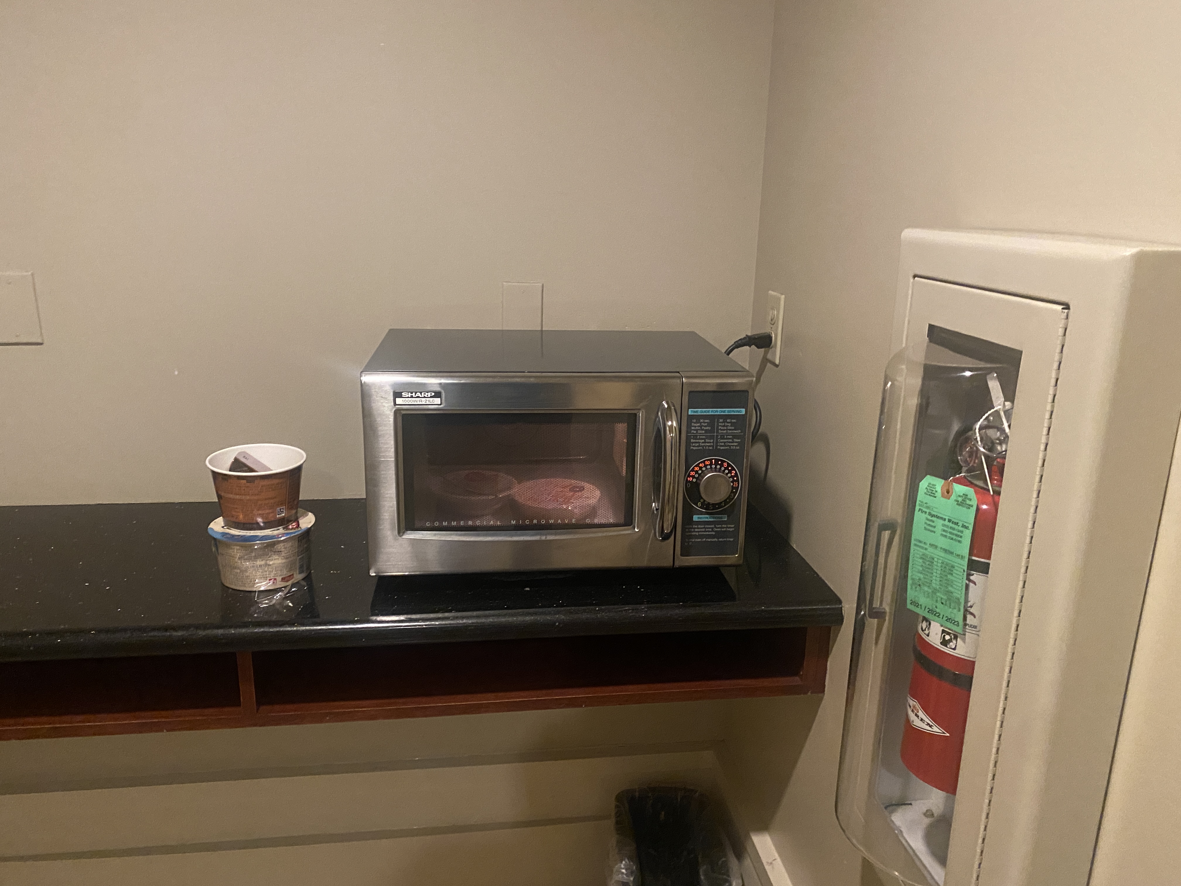 추가적으로 공용 전자랜지도 있는데, 1층 리셉션 옆 모퉁이에 즉 위 정수기 맞은편에 전자랜지가 위치해 있어 햇반을 데워먹을 수는 있다. 음식을 들고 엘리베이터를 타고 내려와서 음식 데우고 해야되서 냄새가 너무 많이 나는 음식은 좀 실례가 될 것 같아 사용하기가 편하지는 않았다.