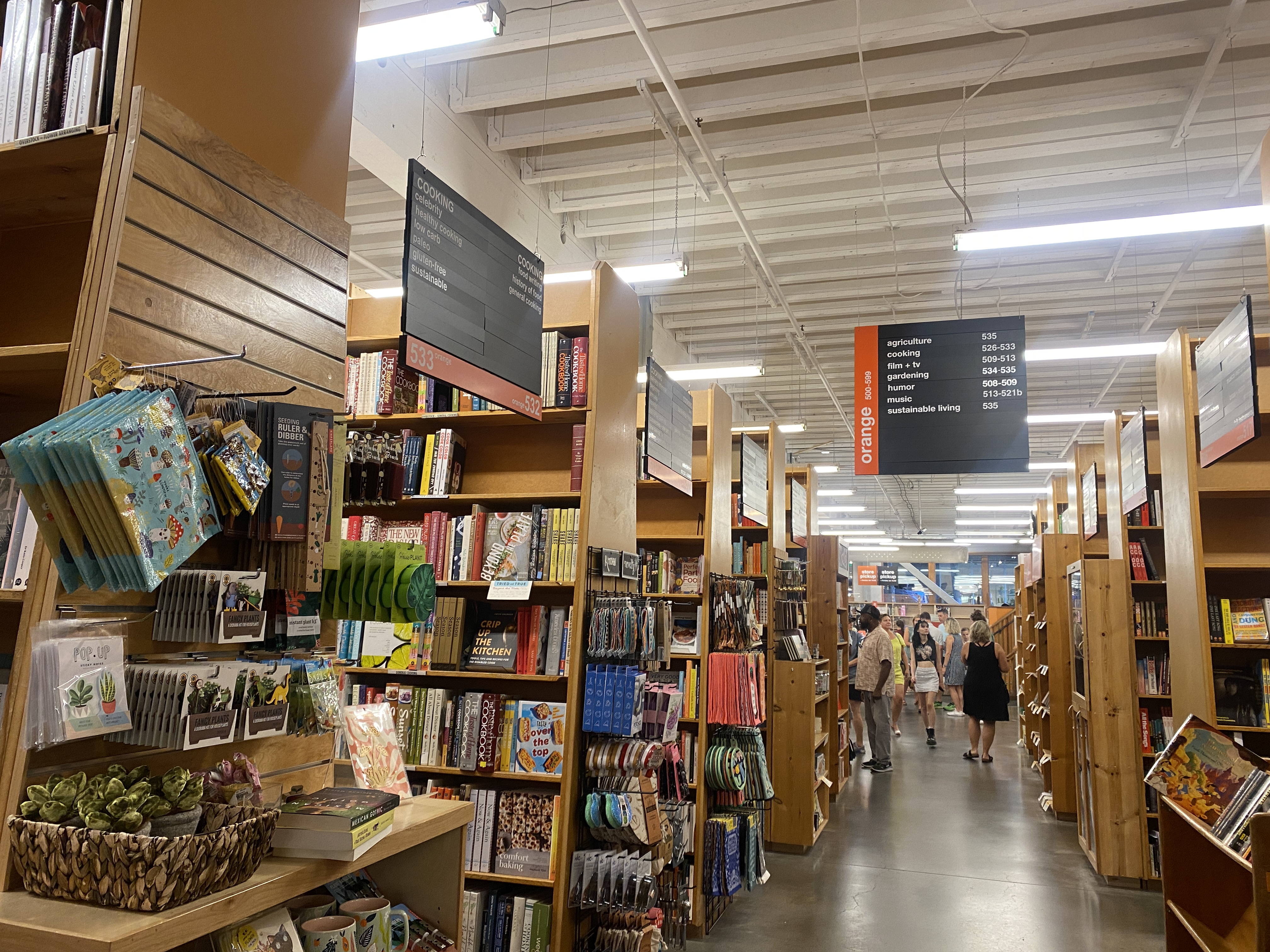포웰서점은 3~4개 정도되는 건물이 연결되어 9개의 룸으로 구성되어 내부는 엄청 넓다. 사람이 많아서 시끌벅적해서 그렇지 기본적으로 아래 사진과 같이 거의 도서관과 같은 분위기다. 그리고 책장에 한칸에 한권정도는 서평이나 추천평이 손글씨로 적혀져 있어 밋밋하고 딱딱할 수 있는 서점이 조금은 더 자유로운 공간처럼 느껴진다.