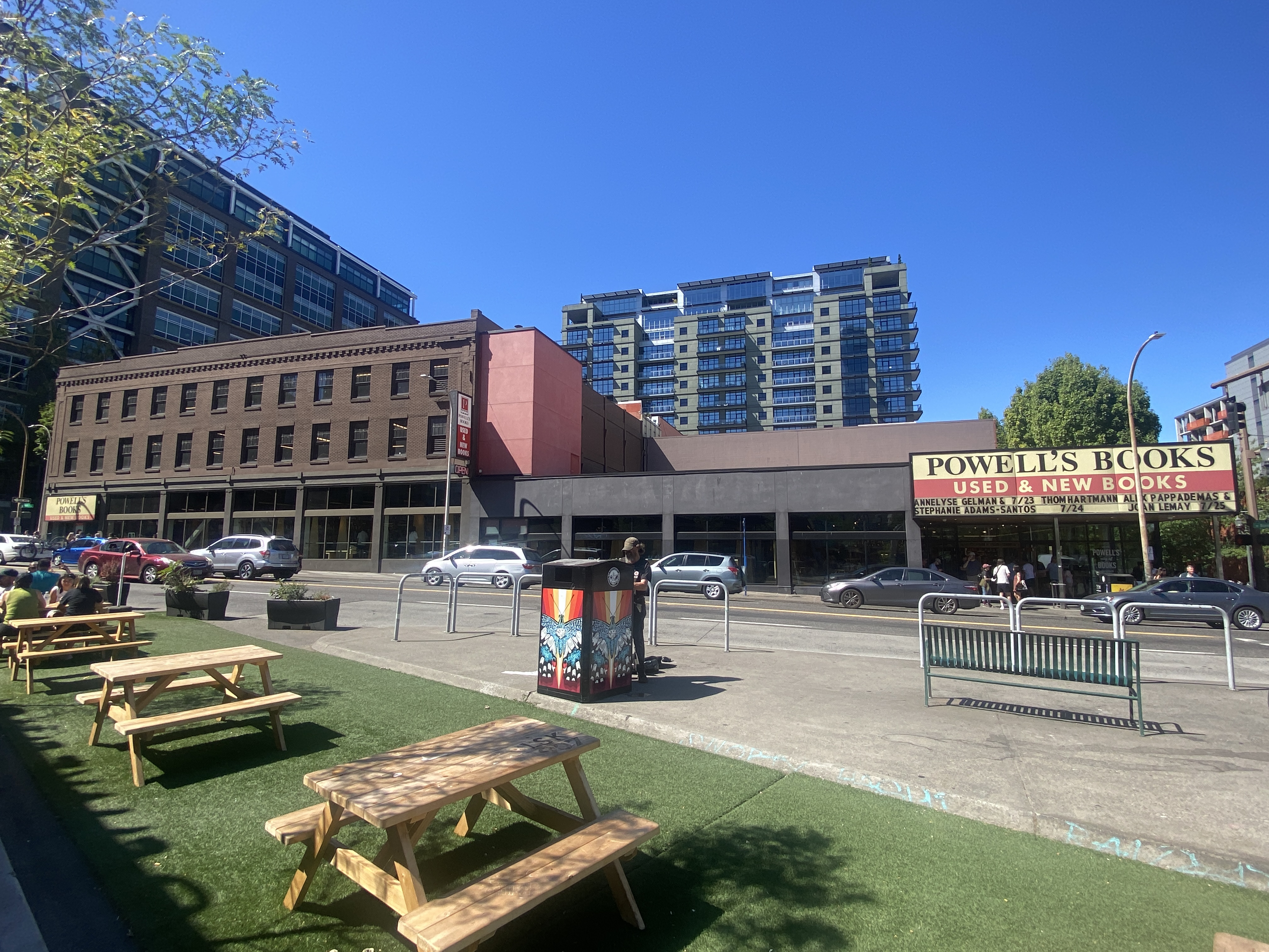 숙소인 더 파라마운트호텔에 짐을 맡기고 다운타운을 둘러보았다. 여름이지만 습하지 않아 먼저 Pioneer Square에 있는 스타벅스에 들렀다. 이 매장이 실내 테이블이 없어 매장 옆 광장 테이블에서 오랜만에 아이스 아메리카노를 먹으며 주말 포틀랜드 동네 분위기를 느꼈다. 바로 뒤 푸드트럭들도 몇개 있는데, 이 푸드트럭을 이용하는 사람들도 눈에 띄었다.