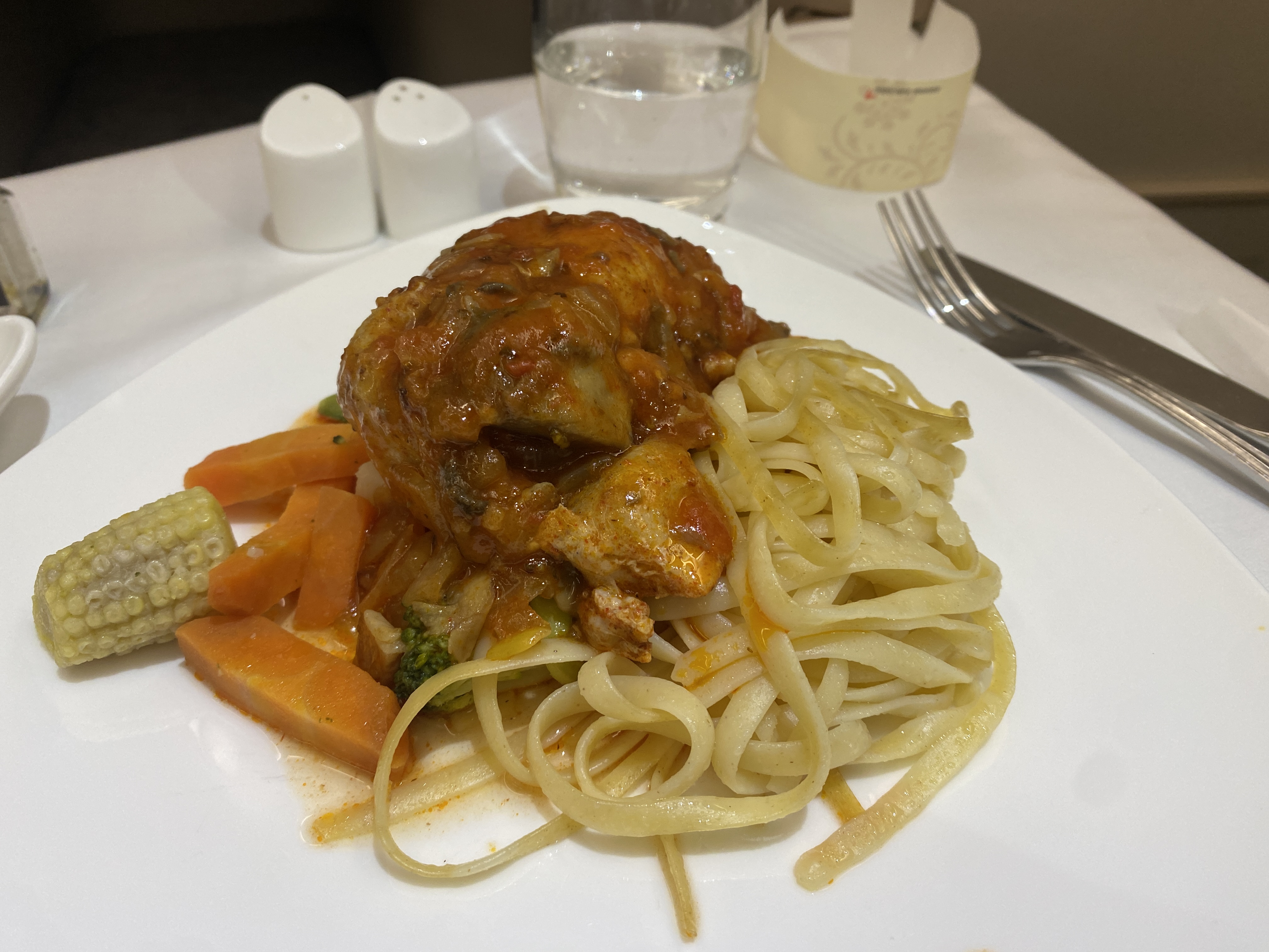 다음으로 닭고기 파스타인 듯했는데, 이것도 꽤 괜찮았다. 다만, 저 아기자기한 후추통의 후추를 좀 뿌려서 먹으려니 제대로 안나와서 뒤에 뚜껑을 열어보니 후추가 떡져서 완전 엉망이었다. 아마도 이런 후추와 소금통 상태관리는 잘 안되는 듯하다.