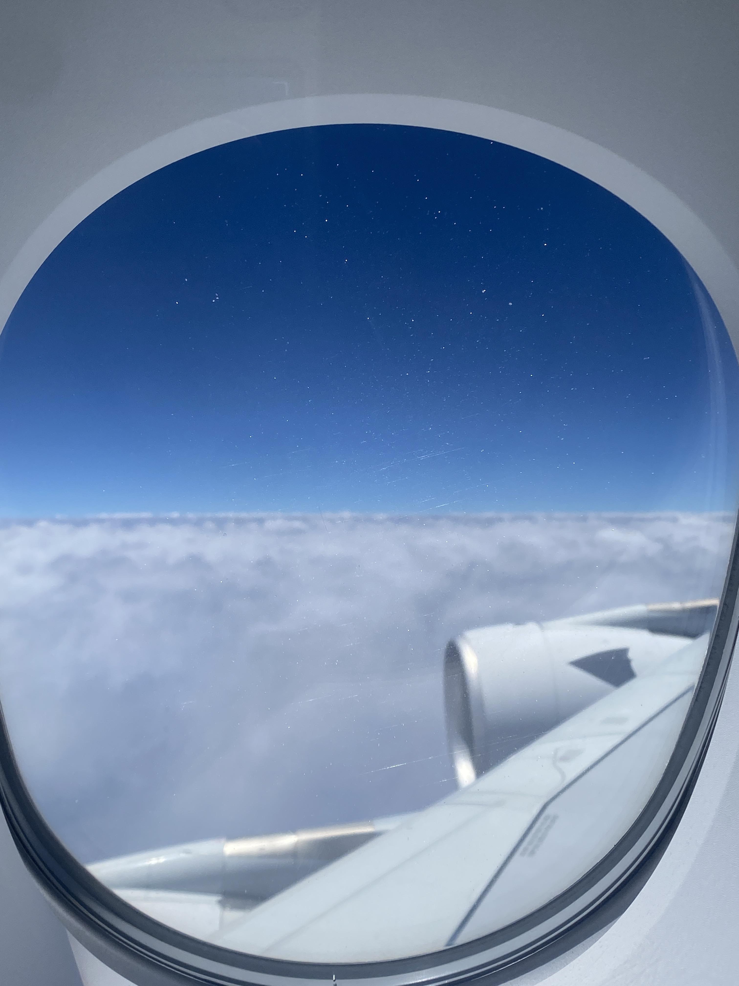 비행기표를 구매할 때 창가좌석으로 미리 배정을 해놓았다. 창가좌석이라고 모두 같은 창가좌석이 아닌지 나의 경우 창가임에도 불구하고 좌석은 통로 쪽으로 있고, 창가 쪽으로 선반이 있다. 창가밑 수납공간과 바깥 구경을 생각하면 좌석이 창가쪽으로 있는 곳이 더 좋은 듯 하다.