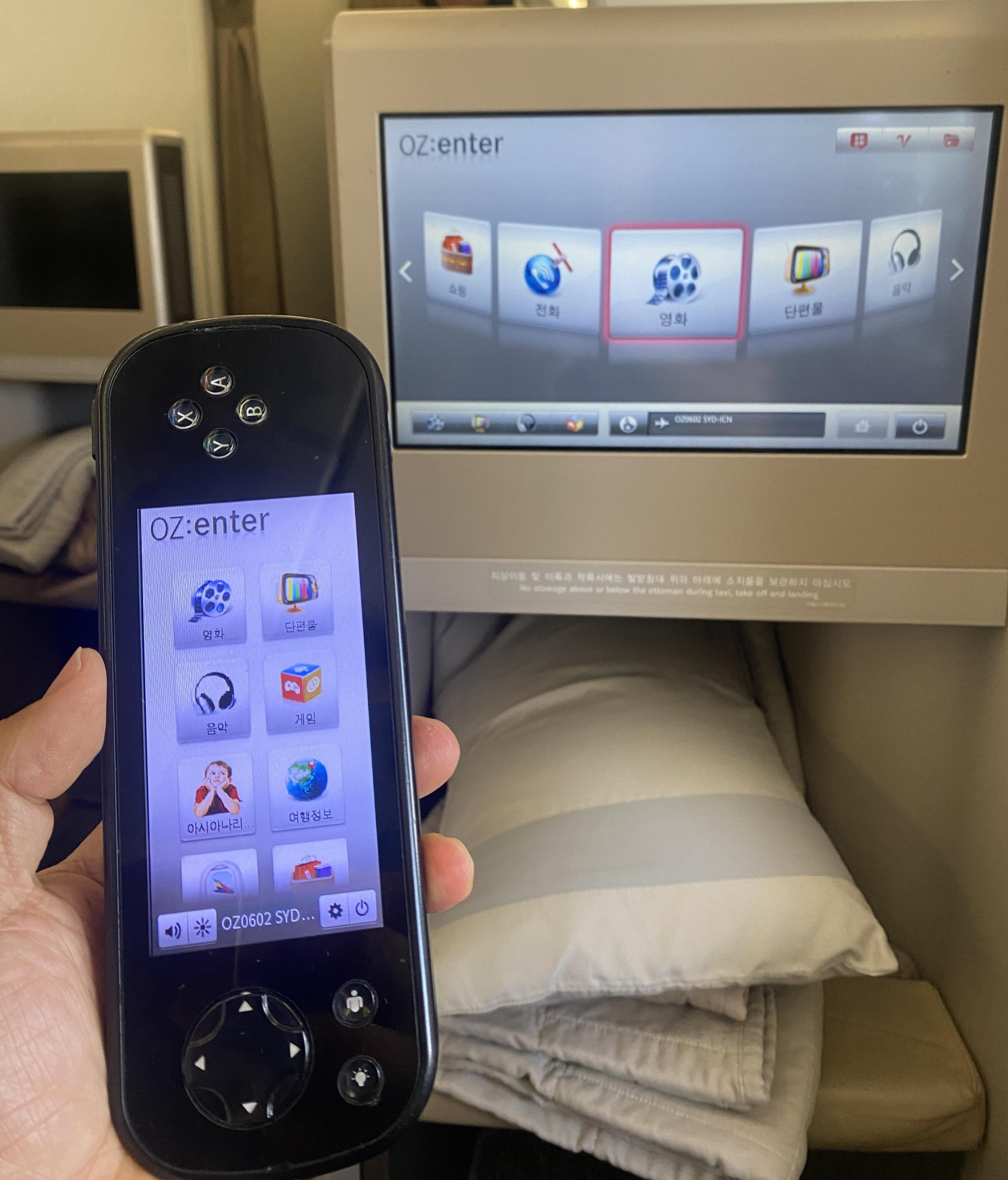 좌석옆의 컨트롤러에도 스크린화면이 나와서 스크린 멀리서도 조작이 가능하긴한데 컨트롤러가 터치라 집어 넣을때 자꾸 다른 것들이 눌러져서 또 좀 귀찮기도 했다. 지난번에 탄 에미레이트항공의 A380 기종의 이코노미석 스크린에 비해서는 확실히 좀 구식인 것 같긴하다. 이 스크린을 보니 아시아나 A380 기종이 좀 오래된 것을 느낄 수 있었다.