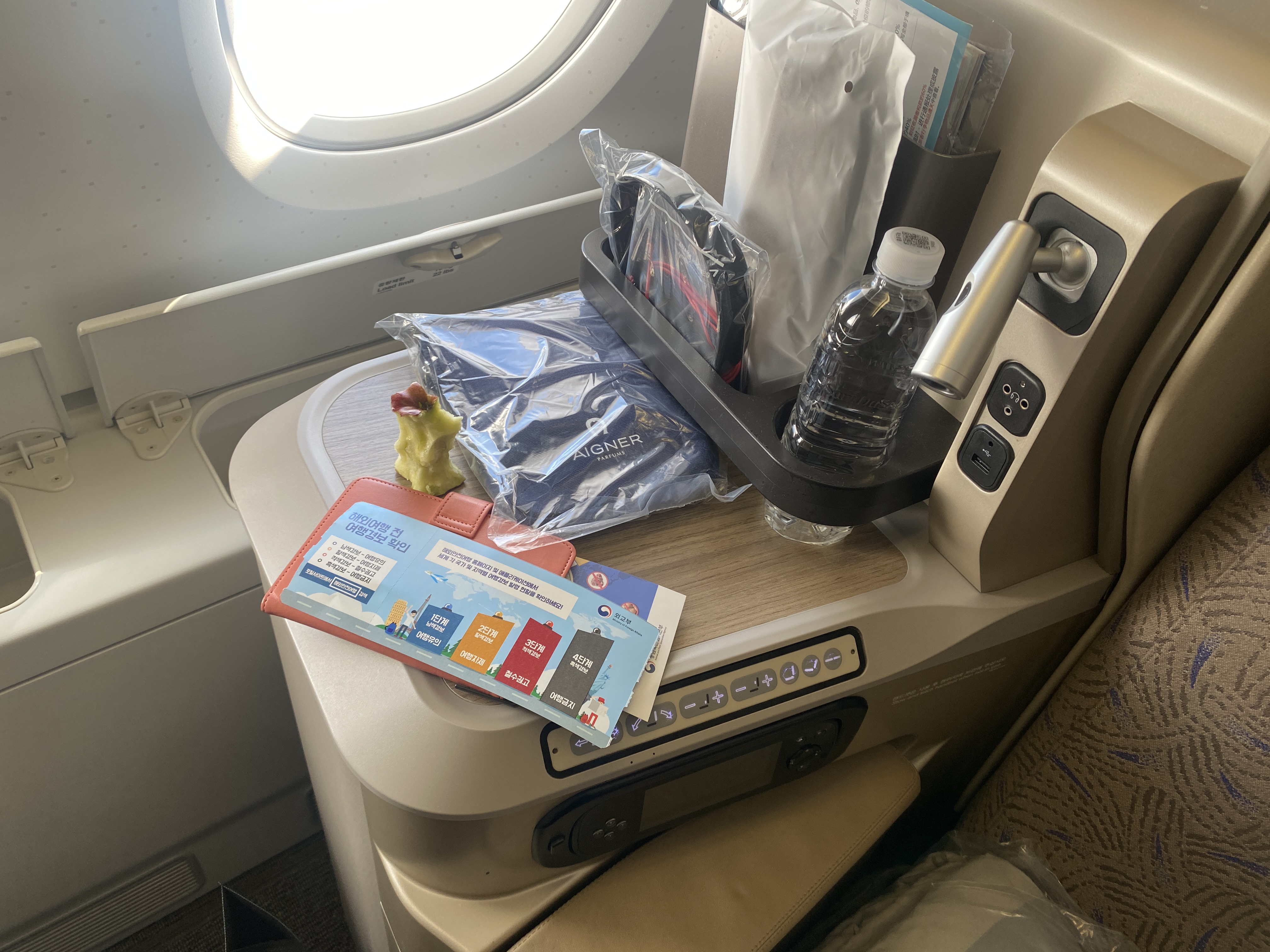 A380 기종의 2층 창가 이코노미 좌석을 조금더 비싼 가격으로 판매하는 것으로 알고 있는데, 바로 이 창가 밑 별도 수납공간 때문이다. 비지니스석에도 이 공간이 있긴한데, 내 좌석이 창가보다는 살짝 복도쪽이라 이용하기에는 불편해서 사용하지는 않았다.