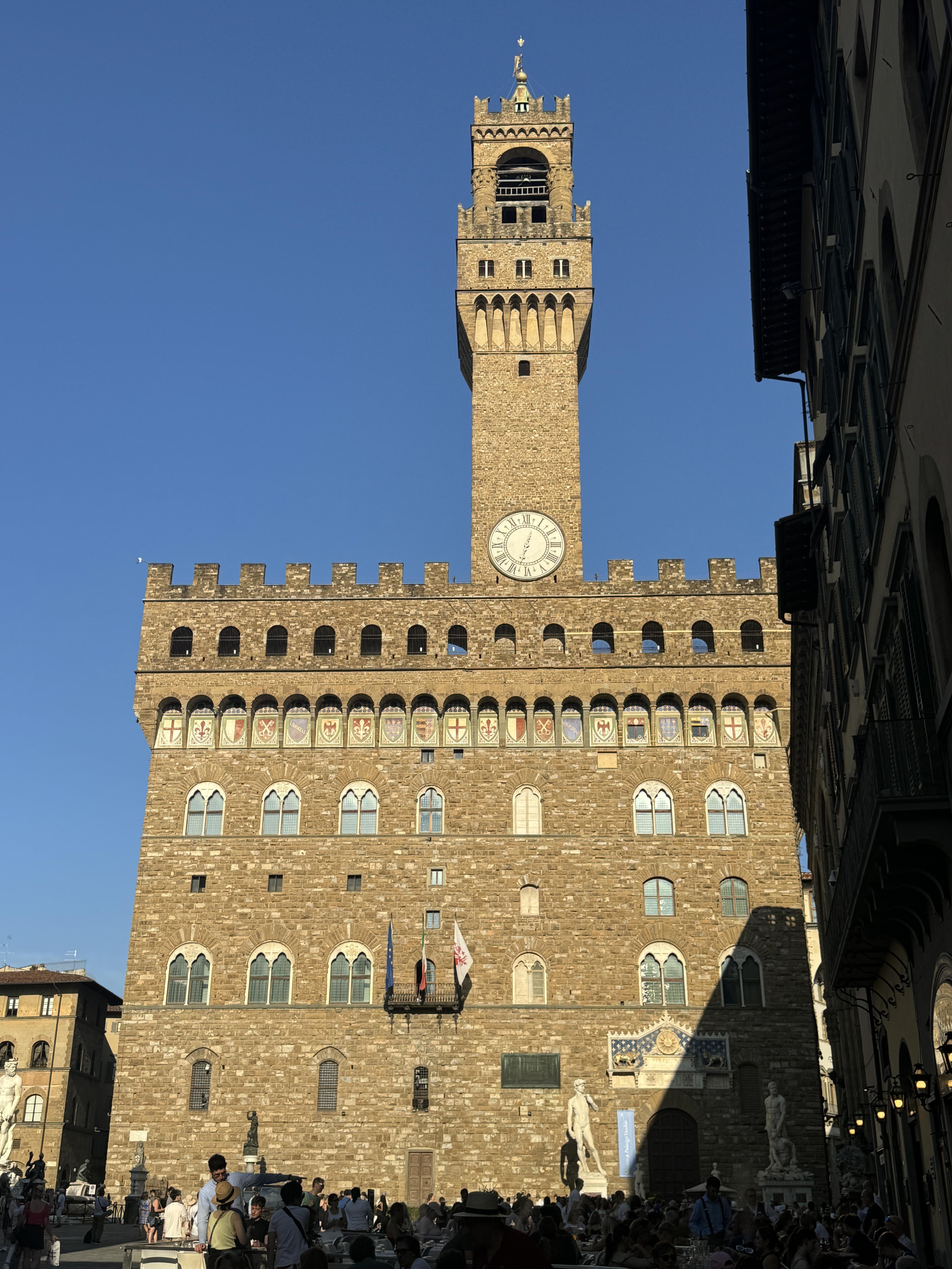 회랑과 베키오 궁전 바로 앞에 그 유명한 미켈란젤로 '다비드'상의 복제품이 있다. 진짜 다비드상은 1872년에 이 자리에 있었고, 지금은 피렌체의 아카데미아 미술관에 전시되어 있다고 한다.
