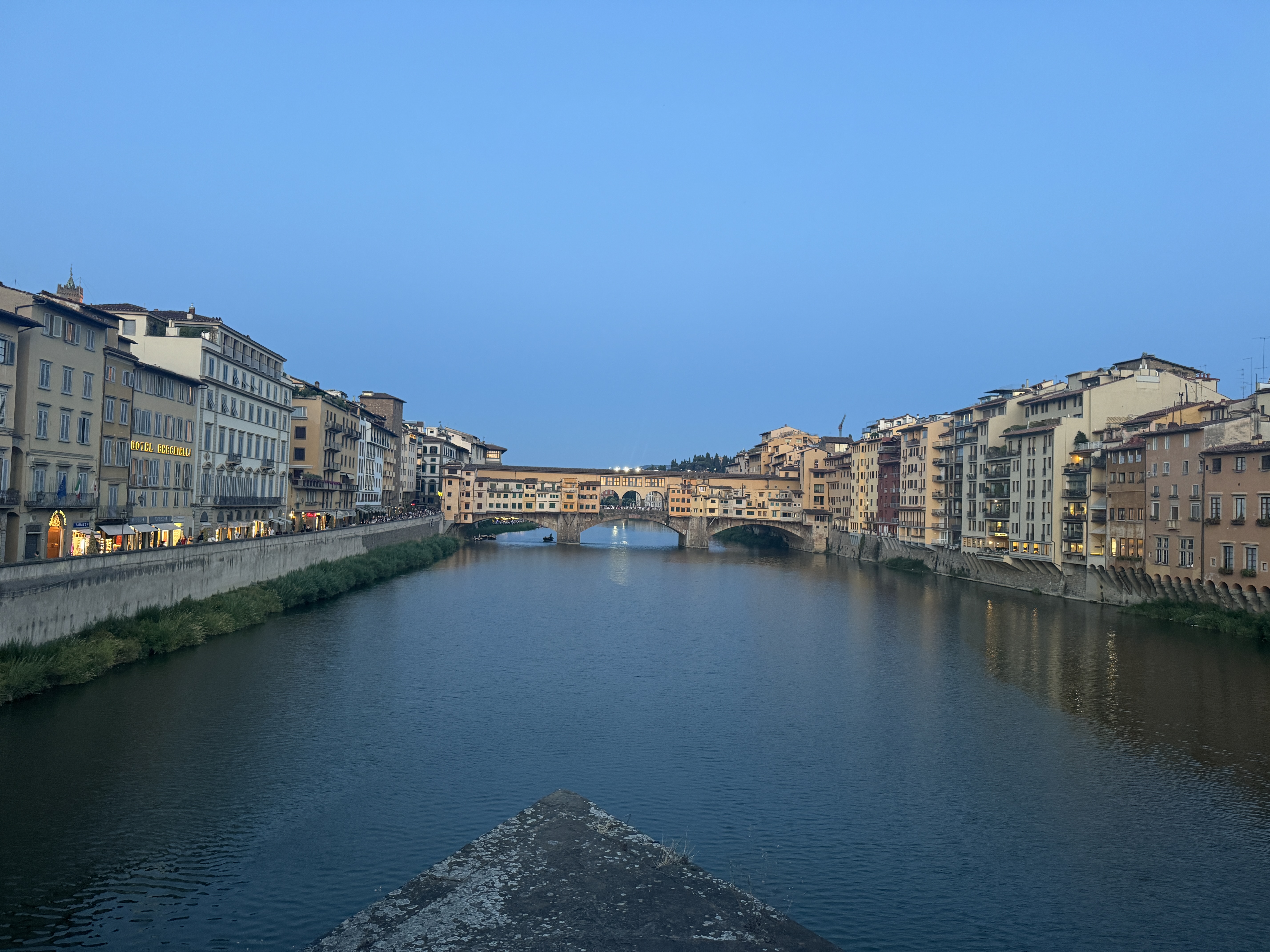 7월의 피렌체는 9시가 넘어야 해가 진다. 저녁을 먹고 해가 지기 시작하는 트리니타 다리 위의 베키오 다리 풍경이다.