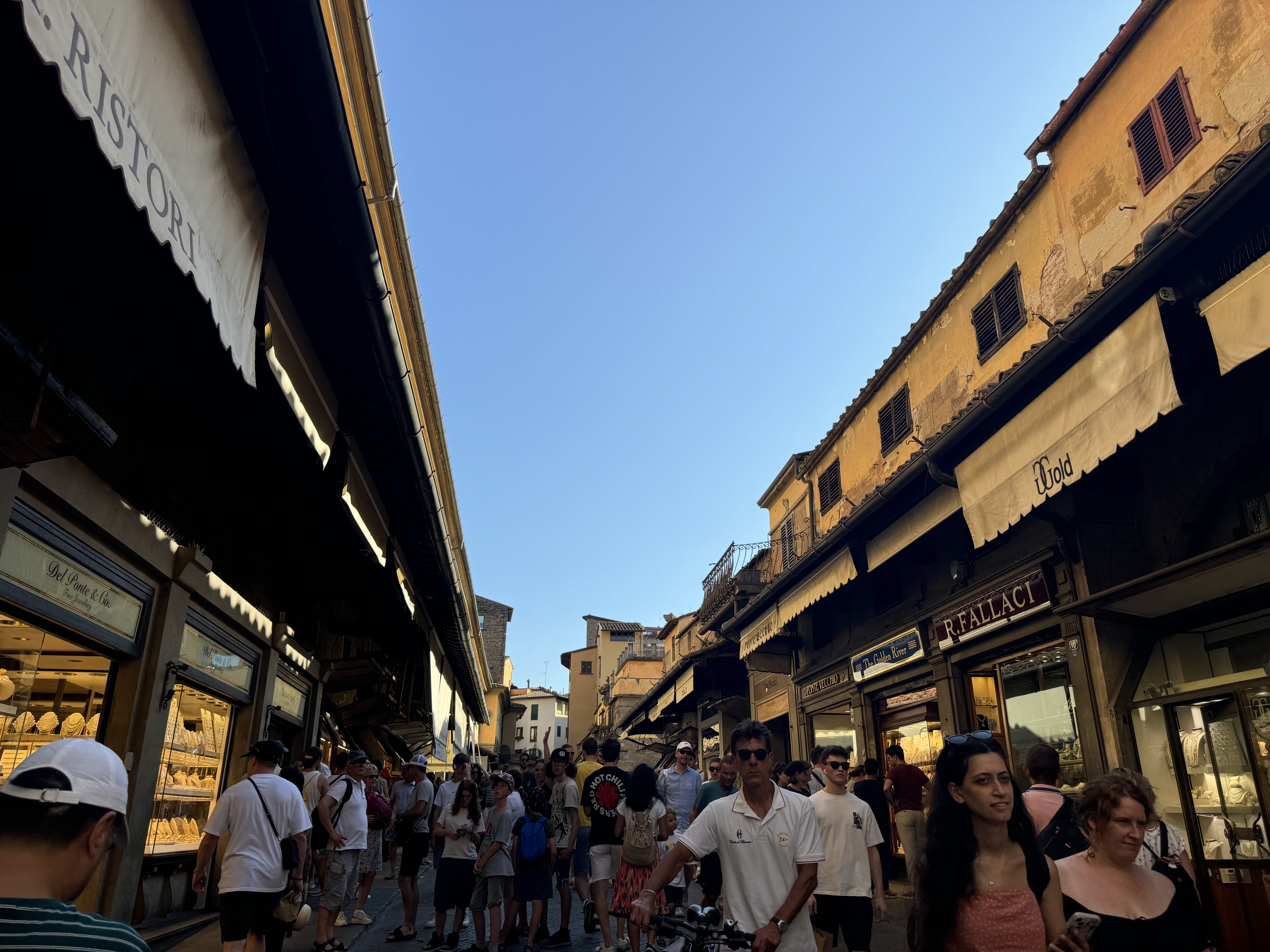 베키오 다리 양옆으로는 보석가게들이 위치해 있는데, 예전에는 푸줏간들이었는데 메디치가의 코시모가 악취를 이유로 쫗아내고 보석상이 들어섰다고 한다.