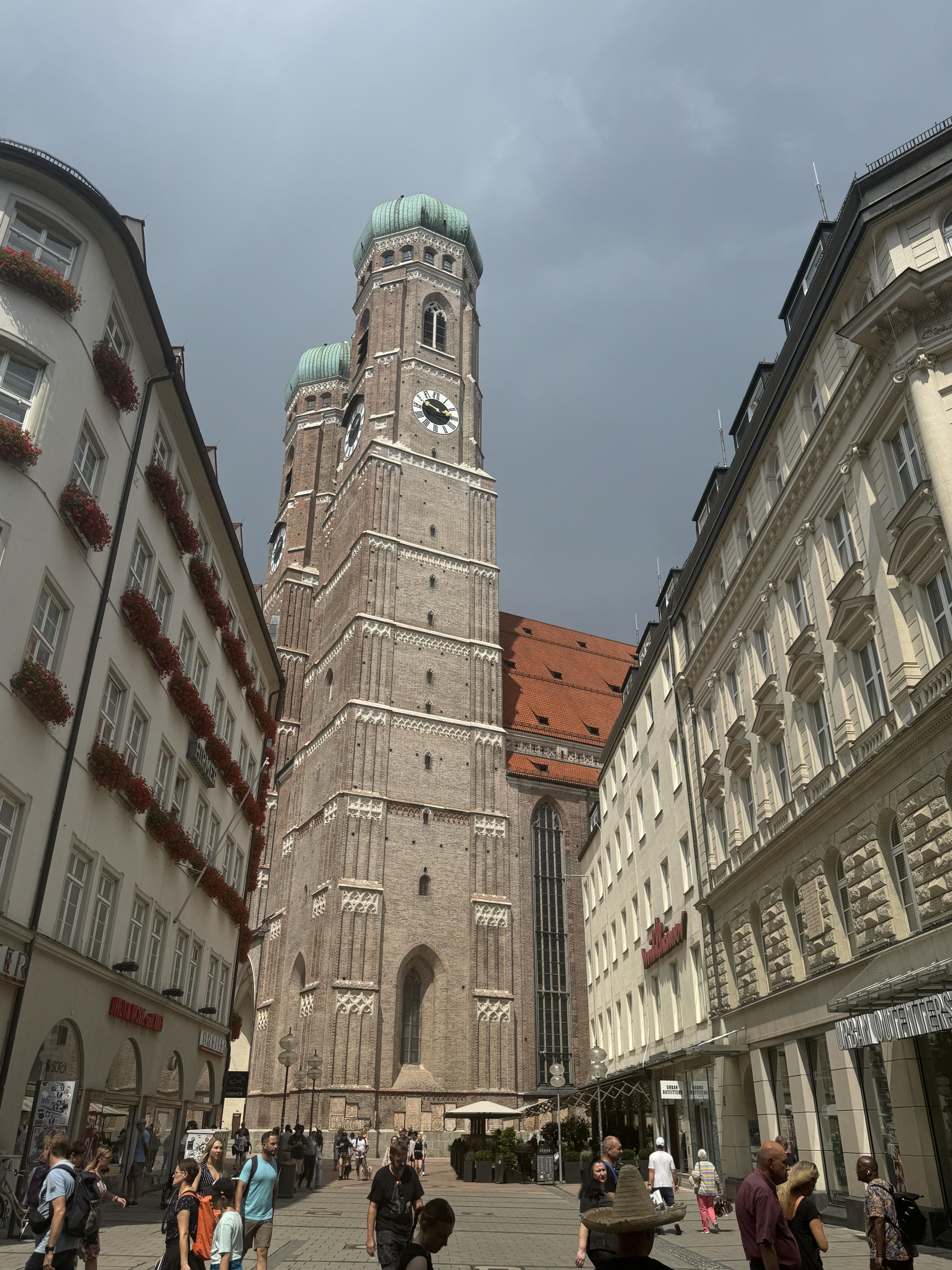 HIRMER 옆으로 성모교회 (Frauenkirche)가 있다. 교회 양쪽의 첨탑의 높이가 109m로 뮌헨 중심지에는 이 첨탑보다 높은 건물은 못 짖는다고 가이드가 설명해주었다.