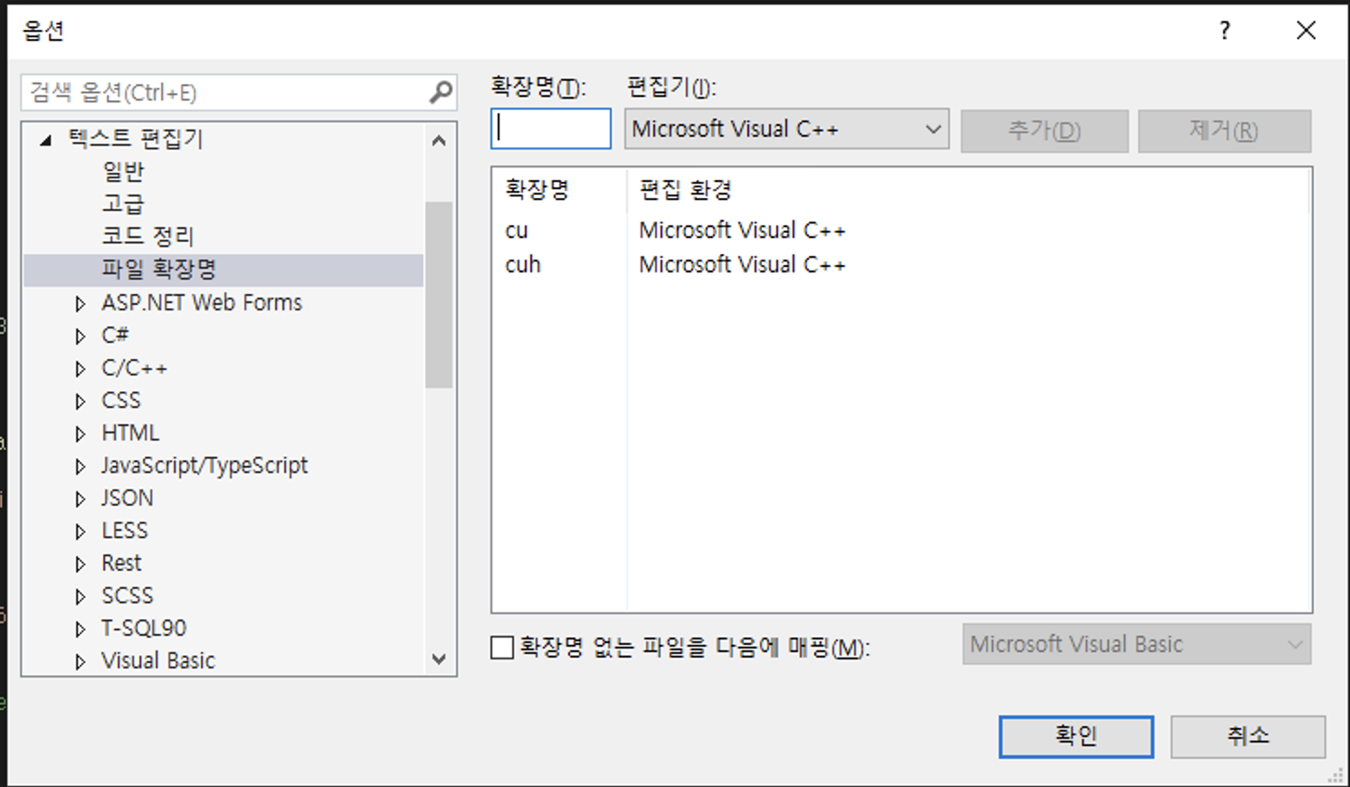 - C/C++ 확장자로 .cu, .cuh 추가: [Tool]-[Option]-[Text Editor]-[File Extension]에서 추가