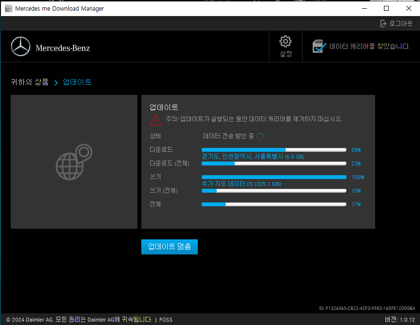 - Mercedes me Download Manager 실행되며 usb에 데이터 다운로드 됨