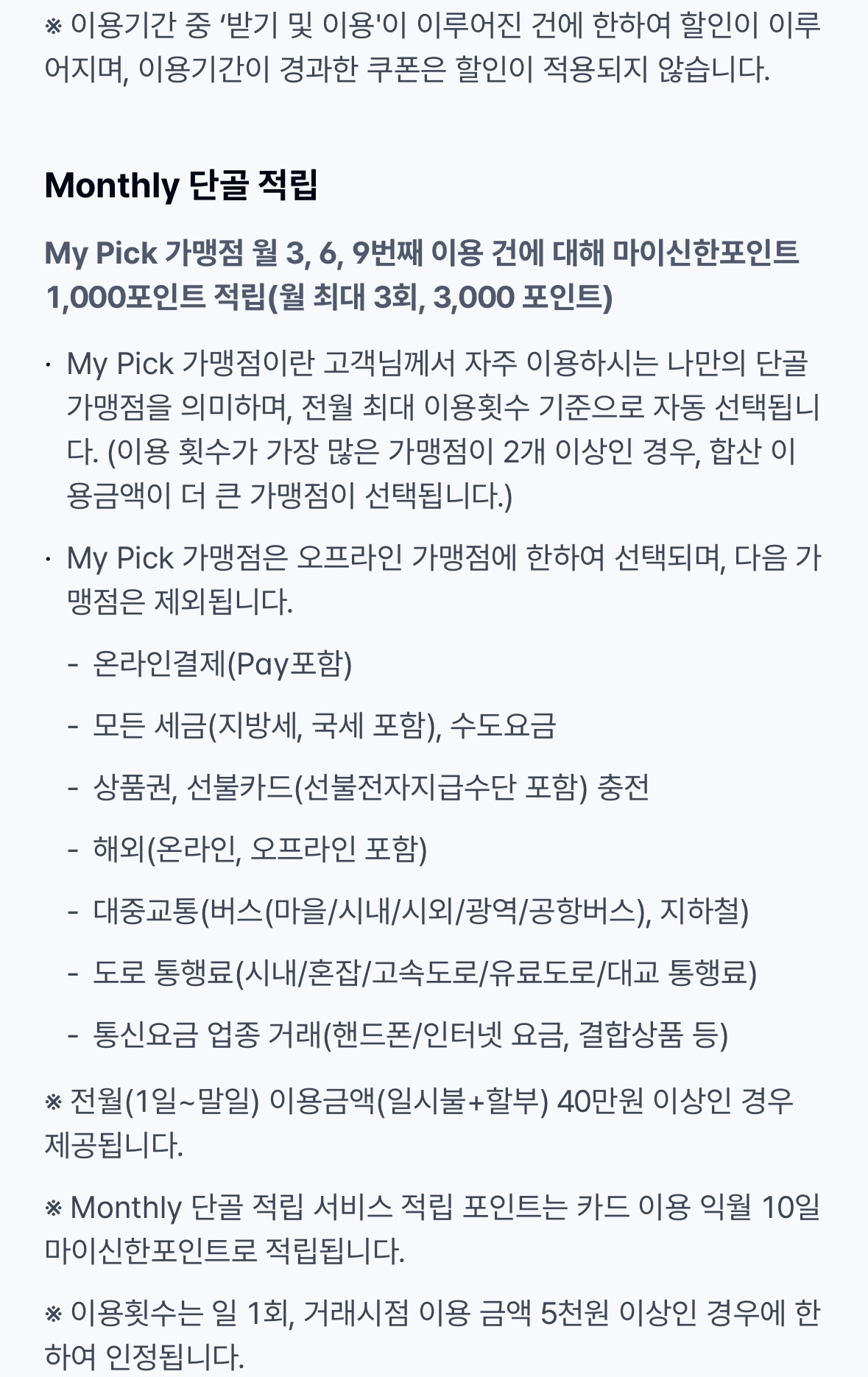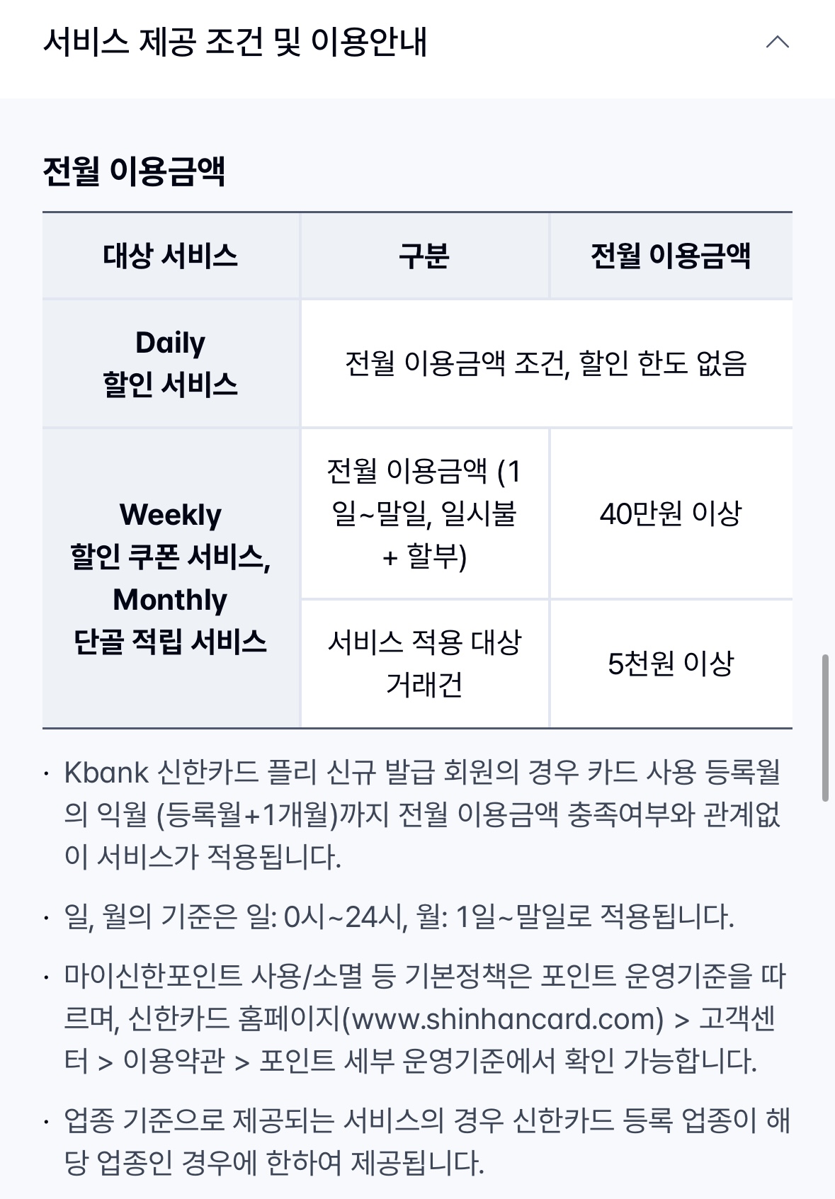 - 신한 SOL페이 : 마이 > 내카드관리 > 플리카드 선택 > 선택형 서비스 조회/변경