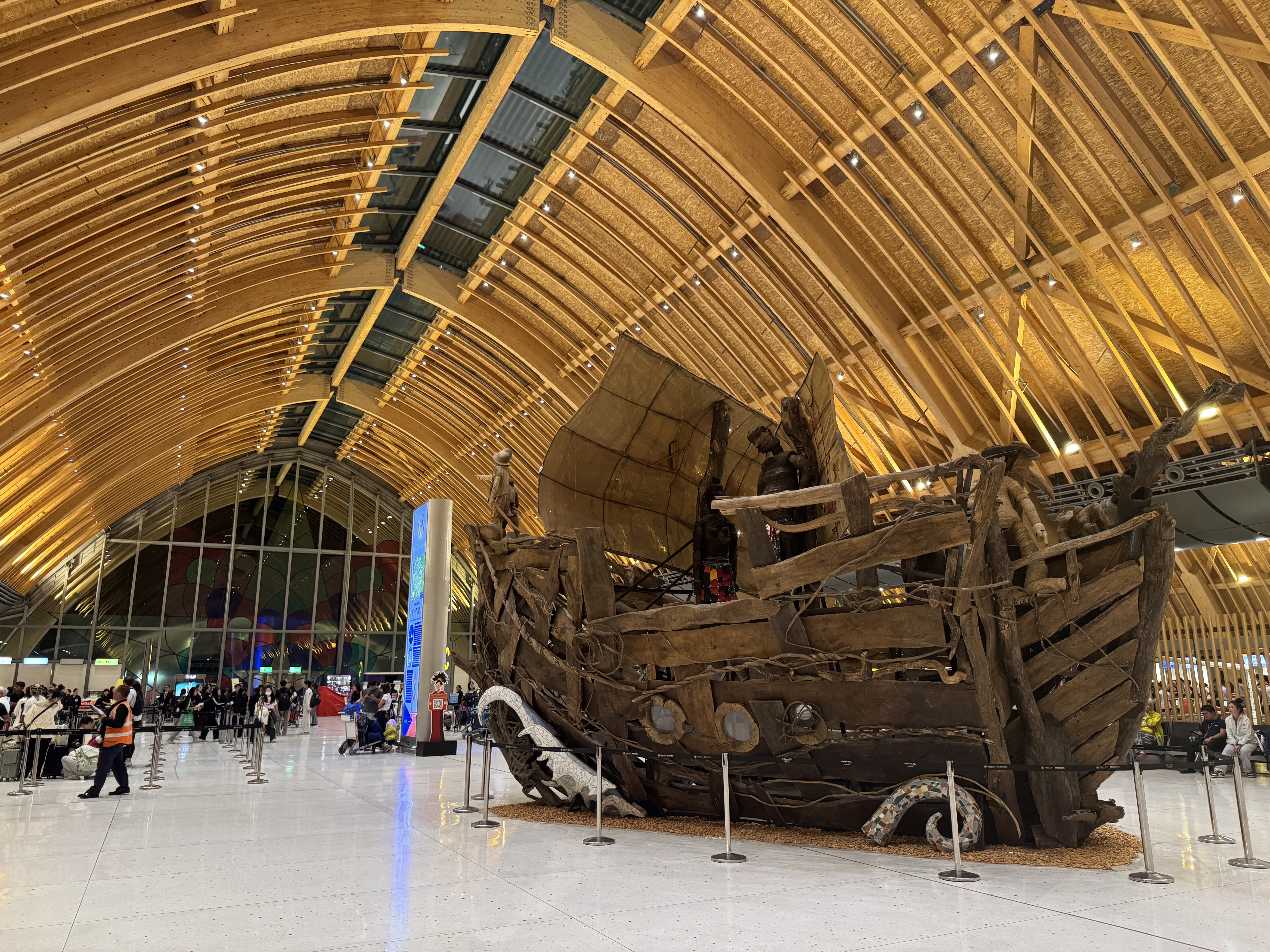 위탁수화물을 맡기고 보안검색하러 들어가기 전에 정말 큰 나무로 된 배 조형물이 전시되어 있다.