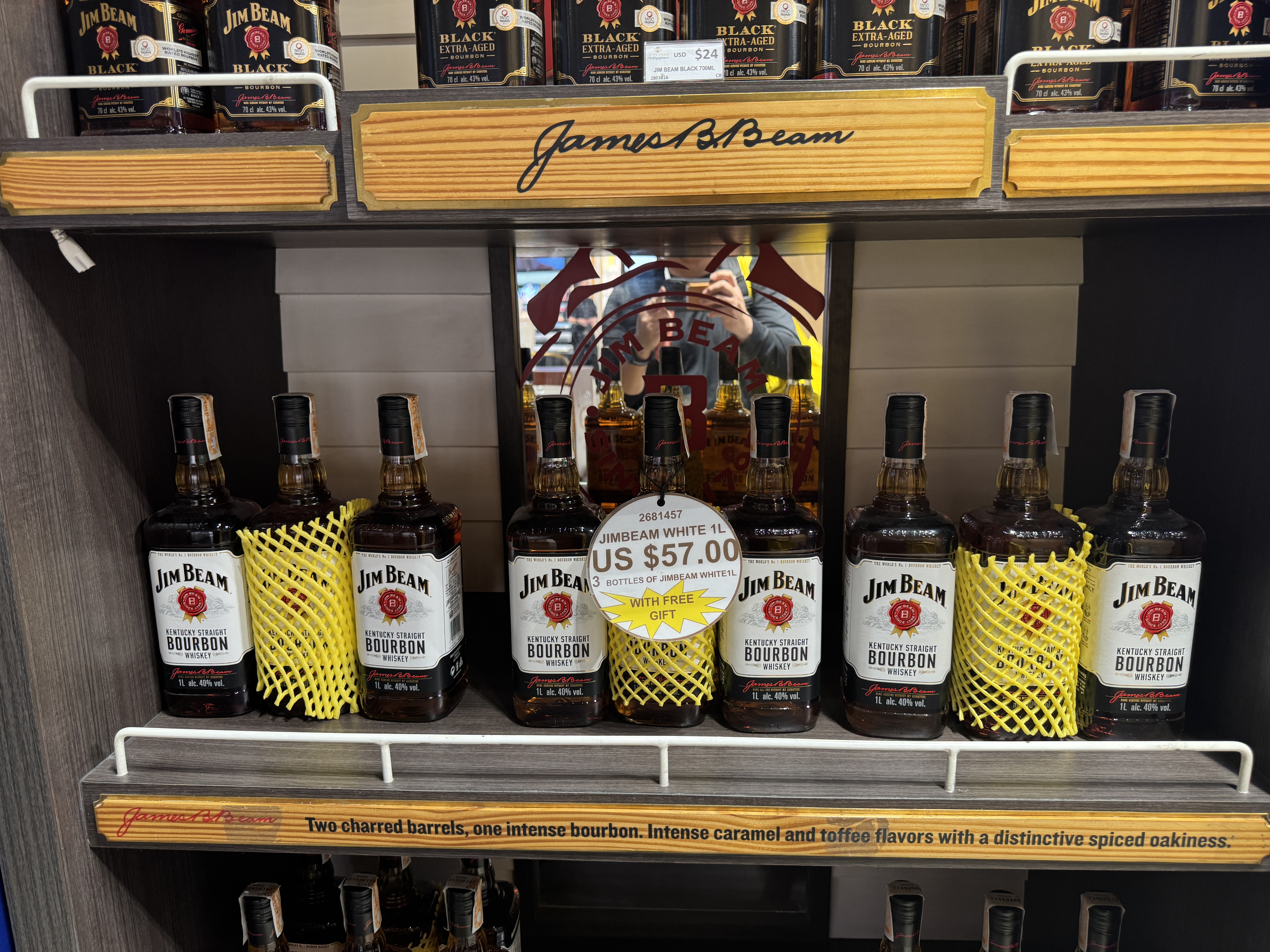면세점에 들어가서 술부터 찾았다. 짐빔이 1L 3병에 57 USD (약 83,000원) 이고,