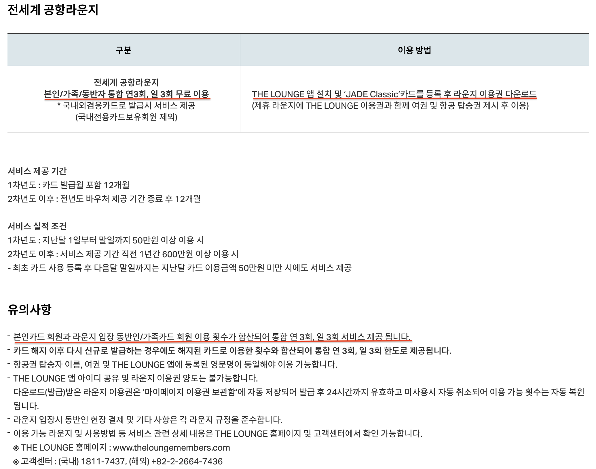 - The Lounge 앱에서 카드 등록후 '본인, 본인+동반1인, 본인+동반2인' 중 하나를 선택해서 발급됨.