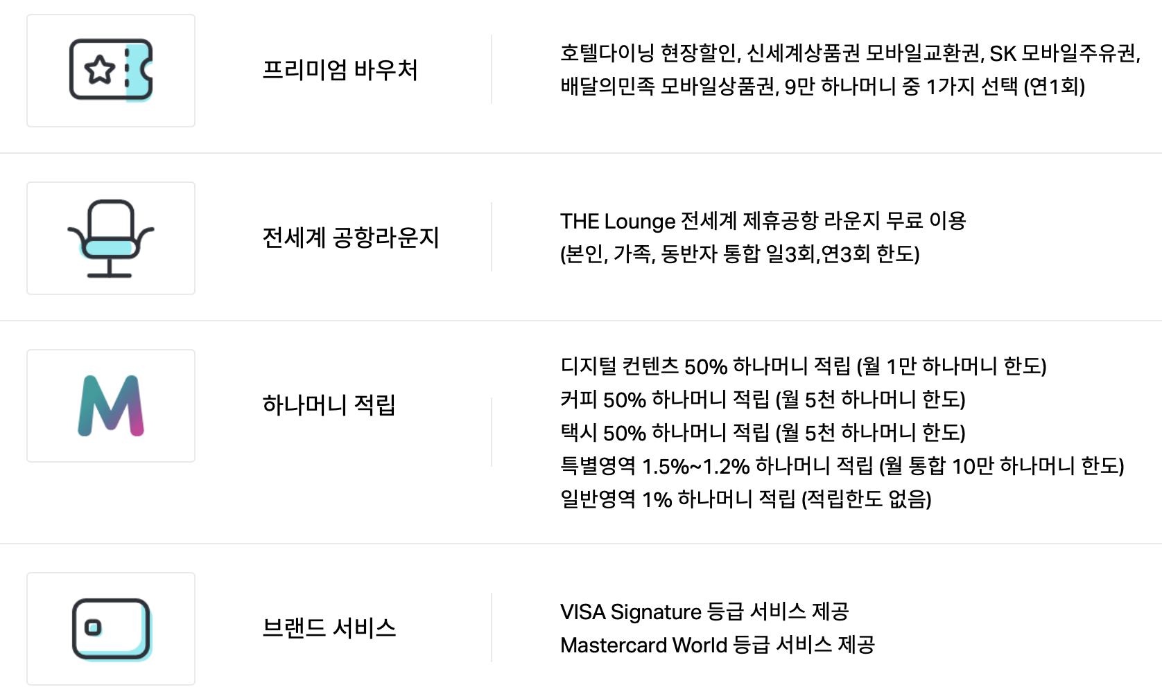 - Hotel(호텔서비스), Shopping(쇼핑서비스), Lifestyle (생활서비스), Concierge(컨시어지서비스), 특급호텔 발렛파킹 서비스, 인천공항 발렛파킹 서비스