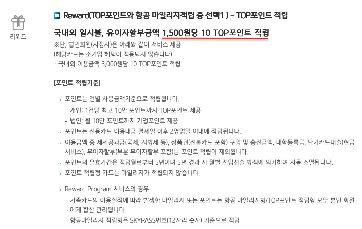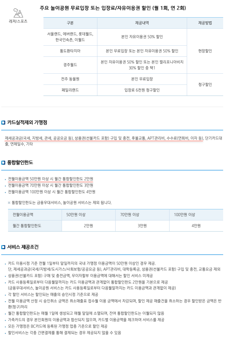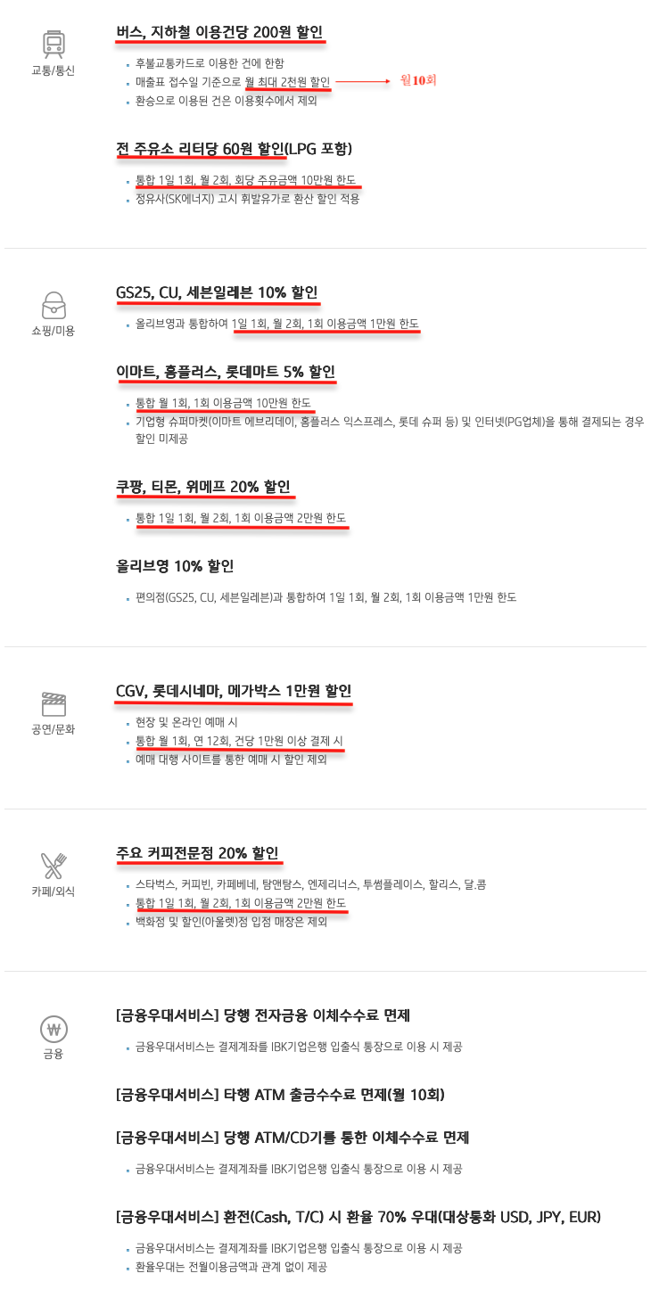 - 필수 조건: 매월 10만원 6개월 이용 ( 아파트 관리비 자동이체시 관리비로 실적 인정 ), 카드 발급 해당월 + 다음달은 합산 10+10 합산 20만원 이용