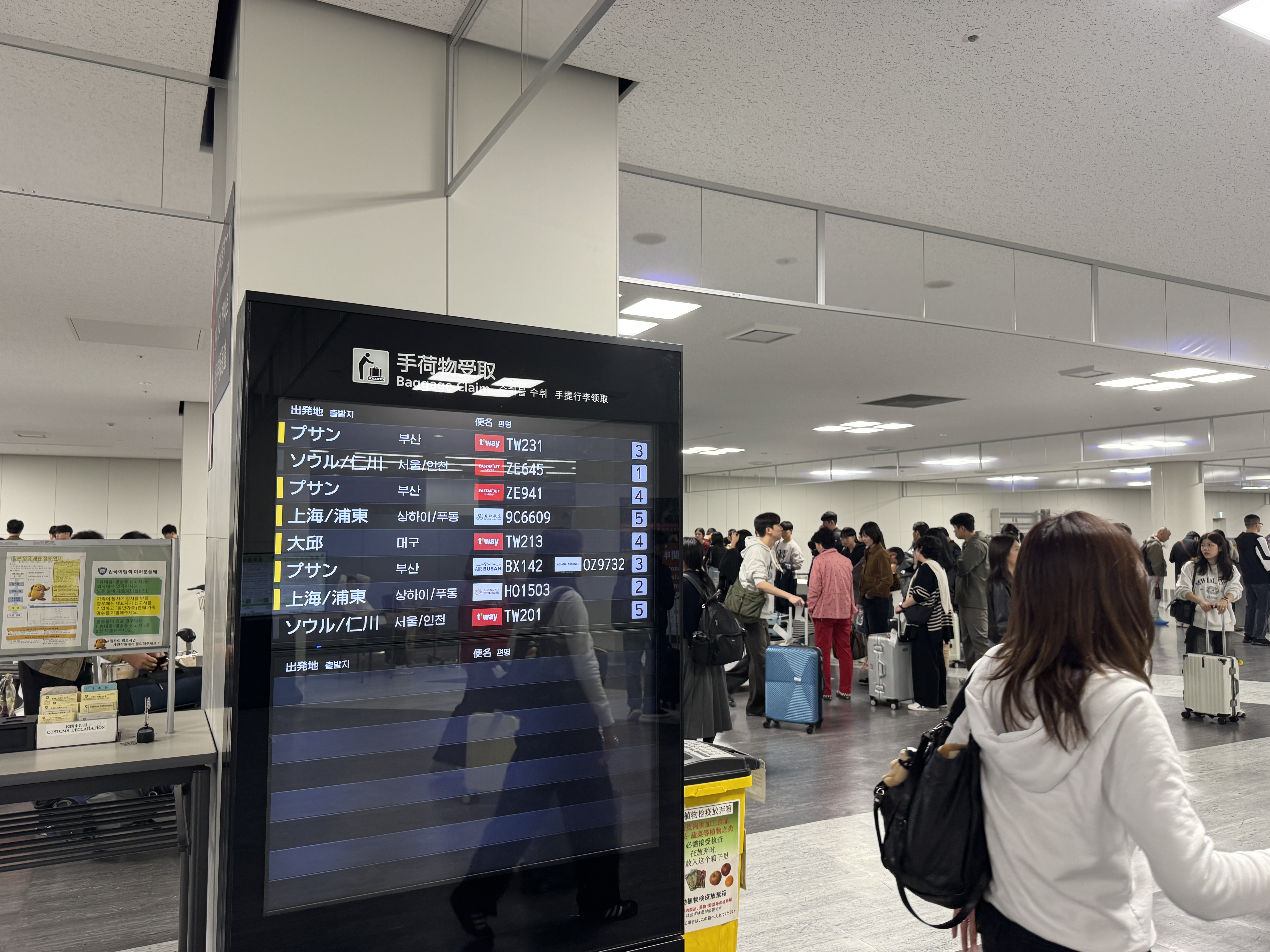 후쿠오카 공항에 도착해서 일본 입국신고 후 짐을 찾을 수 있었다. 대부분이 한국과 중국에서 오는 비행편들이다. 짐 나오는데 한참을 기다려야 했다.