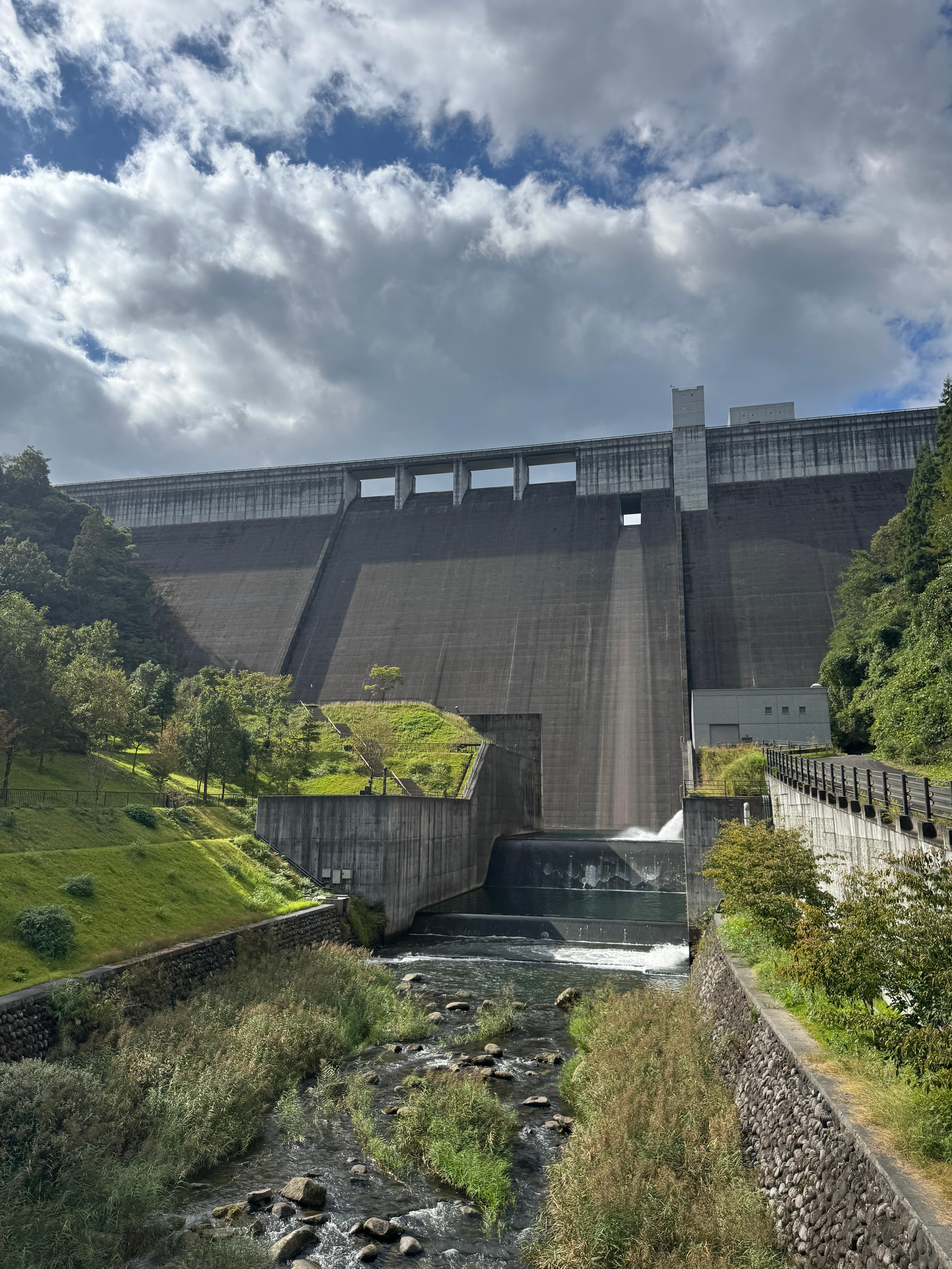 댐 밑의 공원 즘에서 본 댐의 모습이다. 진격의 거인을 본 사람들이라면 익숙한 장벽의 풍경이라고 한다.