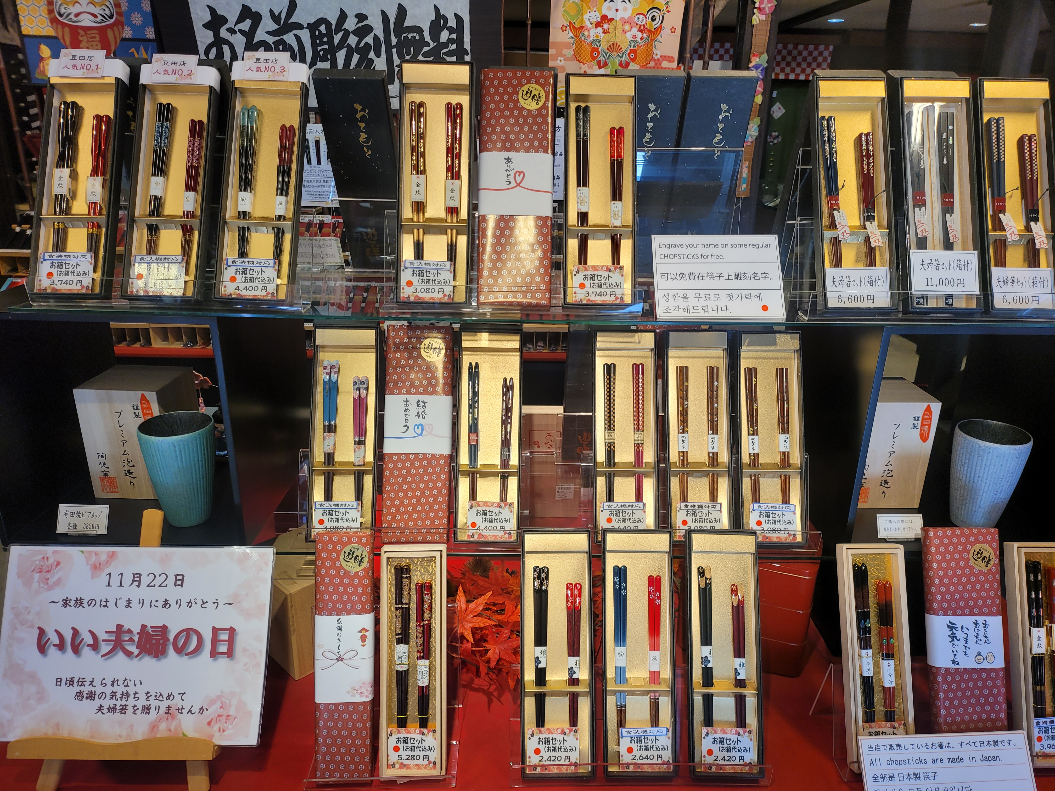 관광객들이 오는 거리다보니 다양한 상점들도 있다. 다양한 일본 전통 젓가락들을 파는 가게이다. 가격은 착하지 않다 ^^