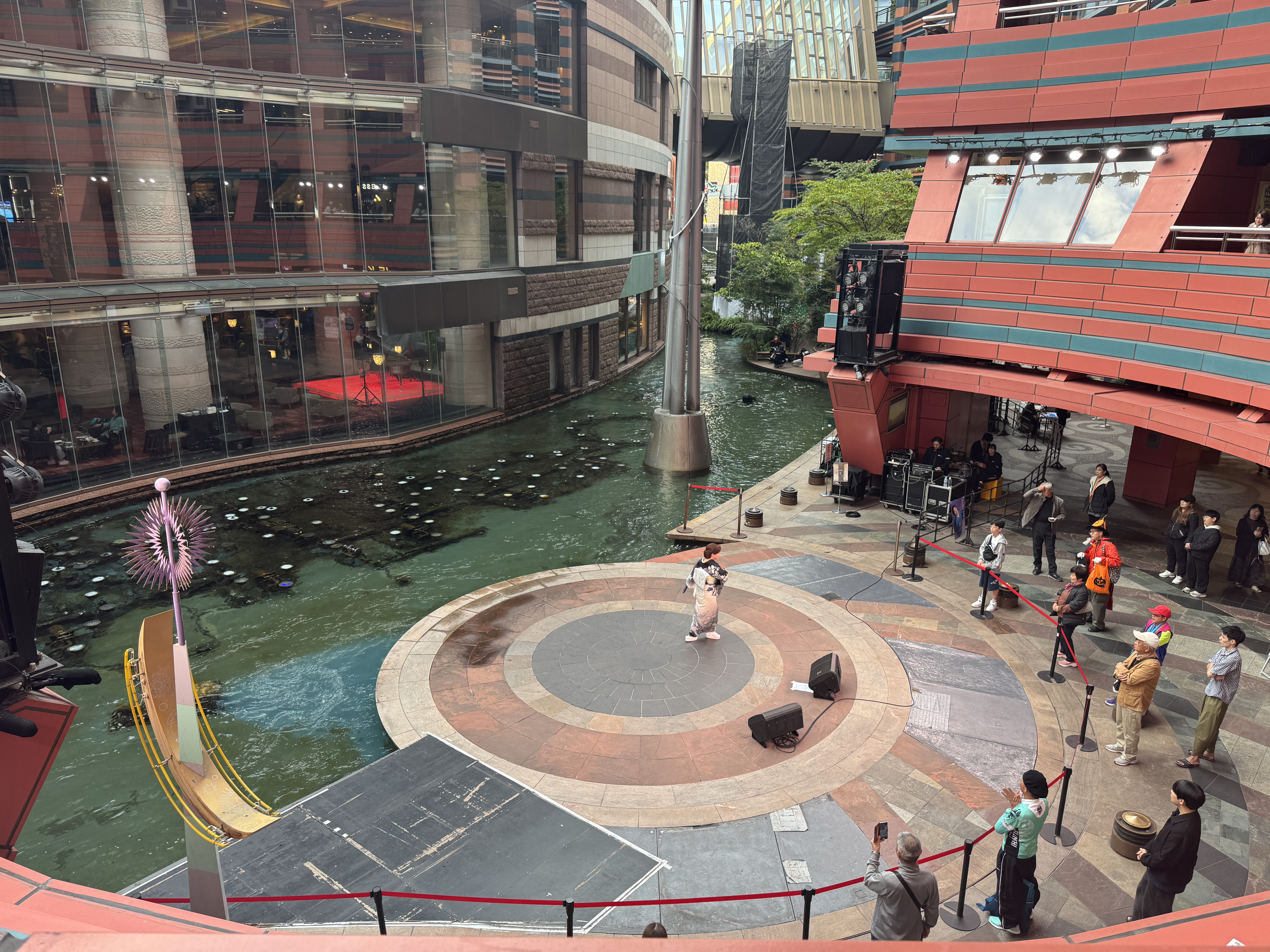 2층인가 위에서 바라본 캐널시티 수로 형상이다. 사실 건물 내부에 엄청 큰 수로가 있으리라 기대했는데 그정도는 아니고 수로를 끼고 건물을 곡선으로 배치한 구조였다.