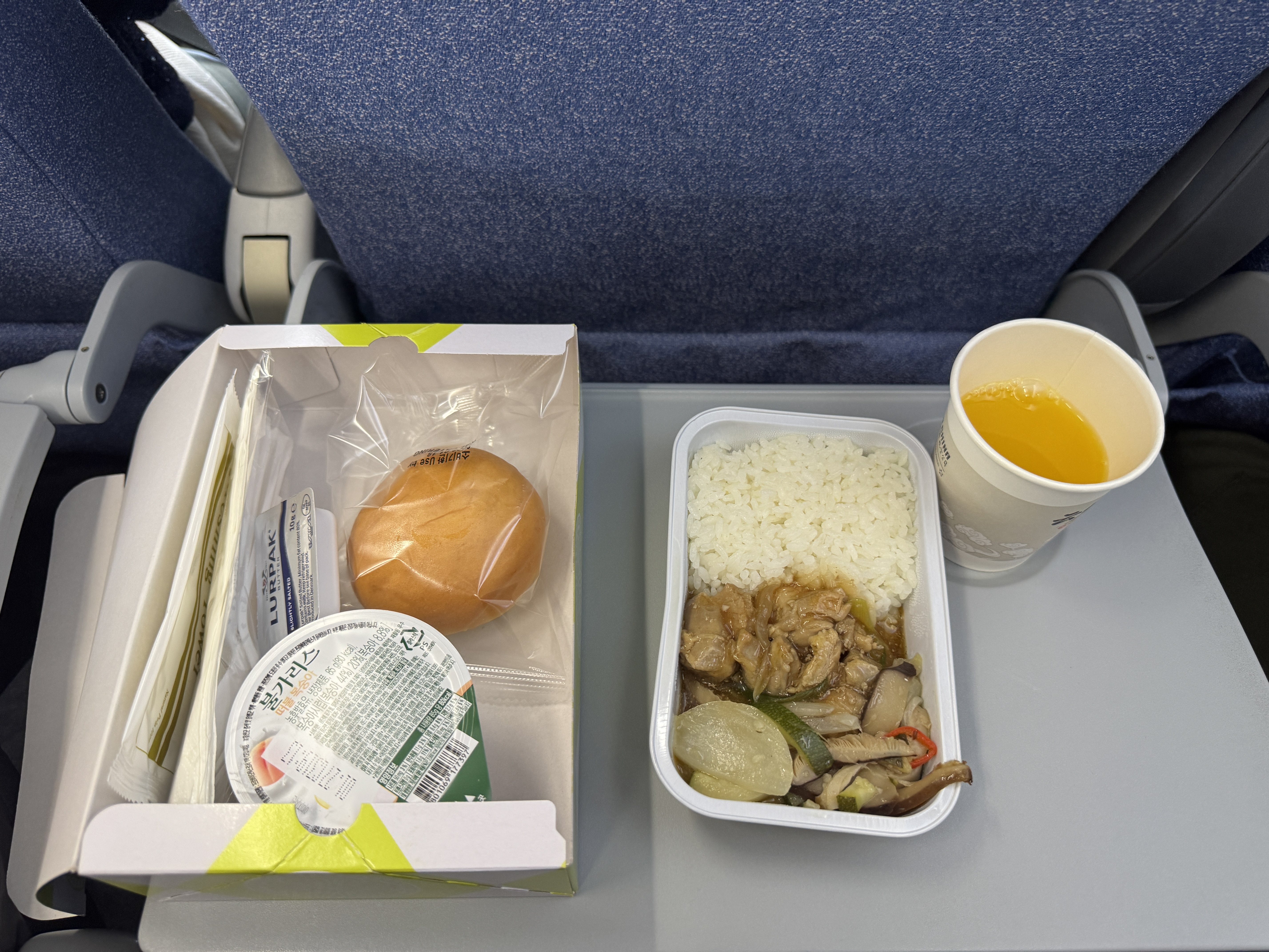 비행기가 이륙하고 1시간 즘 뒤에 음료와 기내식이 제공되었다. 간단한 기내식이라 맛있고 맛없을 것도 없었다. 이 가격에 이 짧은 구간에 샌드위치가 아닌 기내식 주는 게 어딘가 싶다.