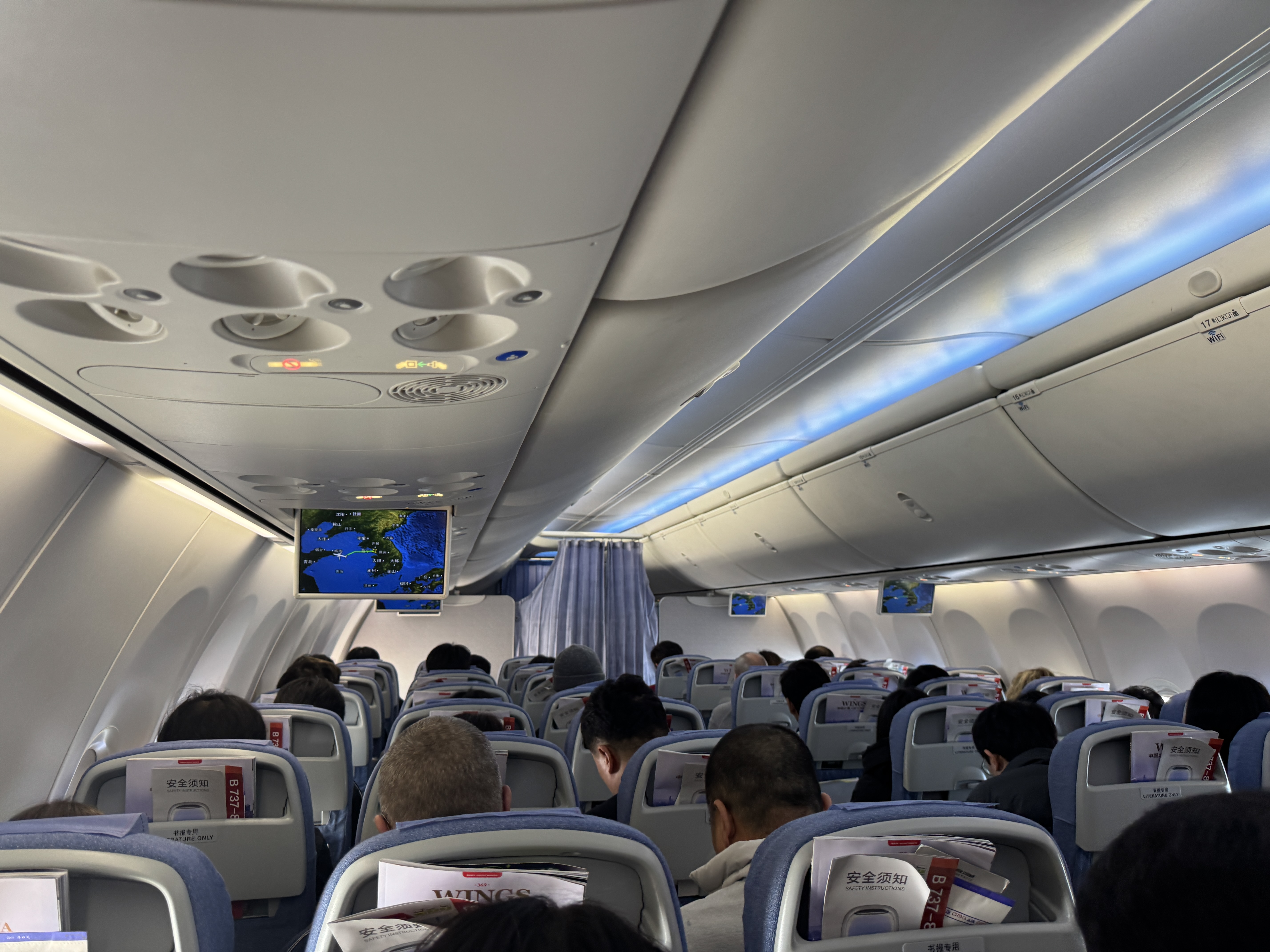 보잉 737 기체야 워낙에 많이 사용되는 것이다 보니 기내야 크게 특별한 것은 없다. 중국가는 비행편이라 늦게 탑승하면 기내수화물 올릴 공간이 별로 없어 조금 불편하긴하다.