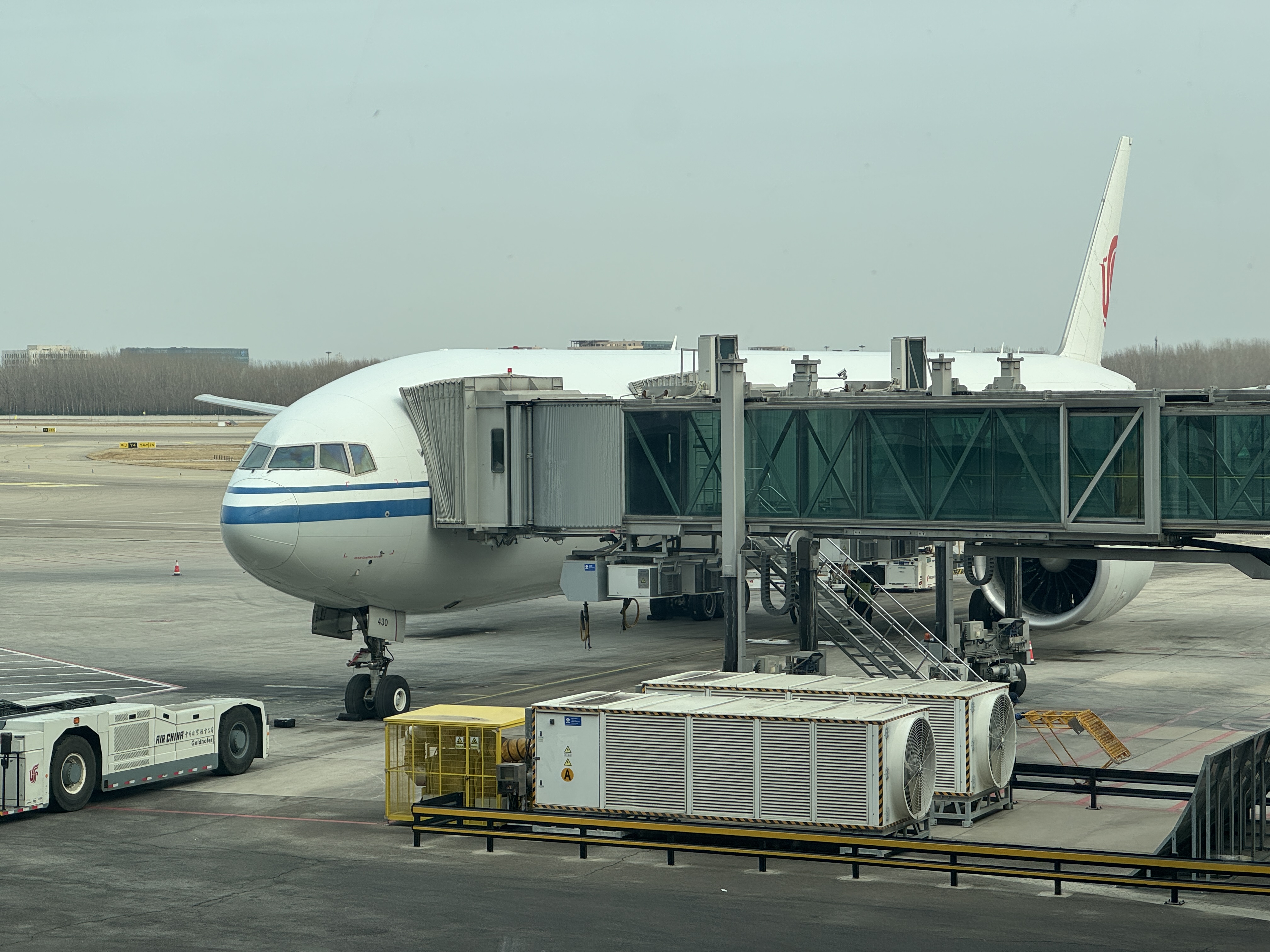 베이징수도공항에서 로마공항으로 가는 CA939 비행편은 보잉777-300ER으로 대형기체라 밖에서 봐도 제법 커 보인다. 좌석만 392석 정도 된다고 한다.