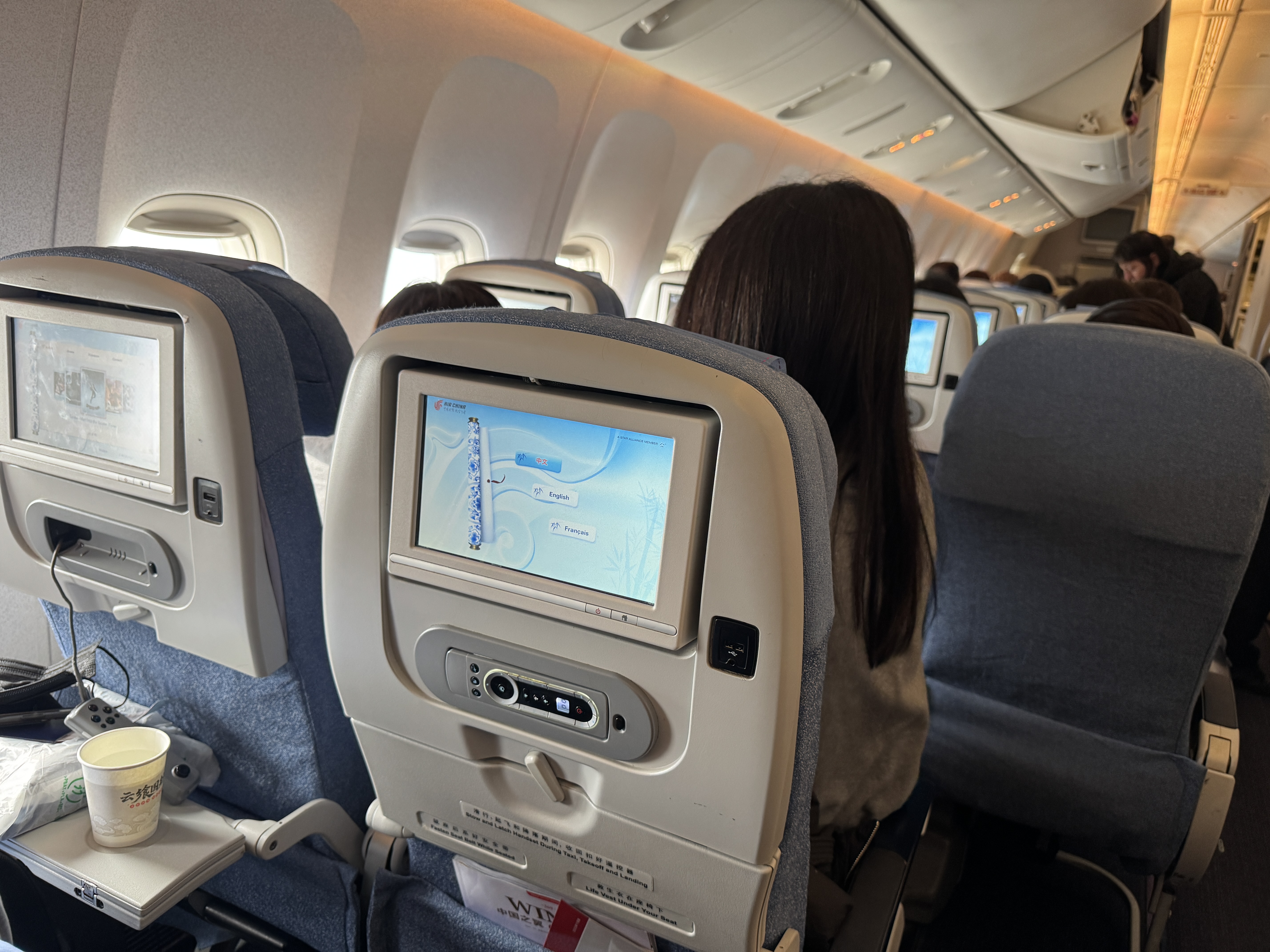 중국 항공사의 경우 가장 힘든점이 중국사람들끼리 모여 시끄럽게하는 것인데, 그런 사람들도 없었다. 다만, 가장 아쉬운 점은 항공기 유리창을 자주 안 닦는 것인지 험한지역을 많이 다녀온 건지... 유리창 상태가 이래서 밖을 제대로 볼 수가 없었다.