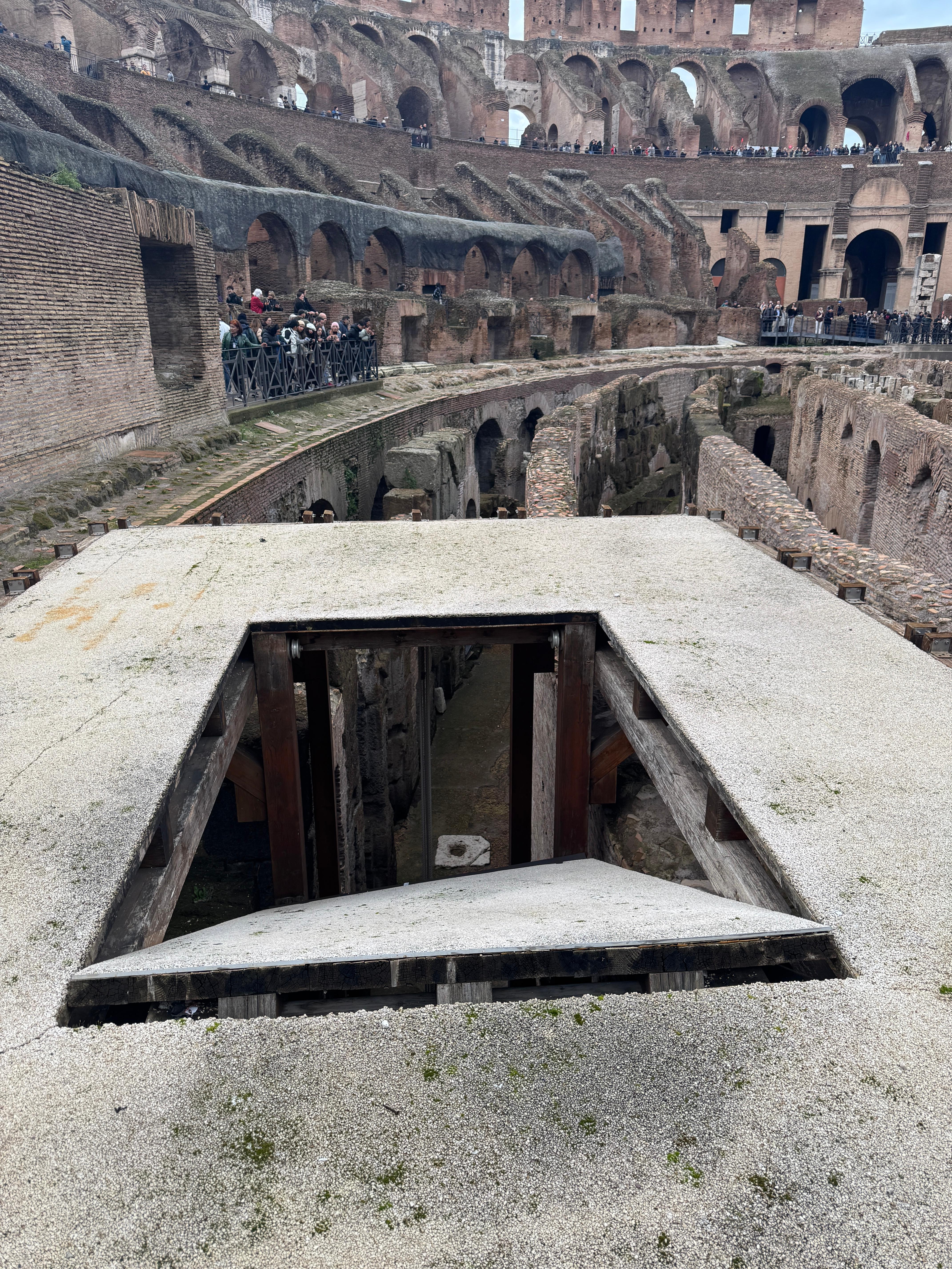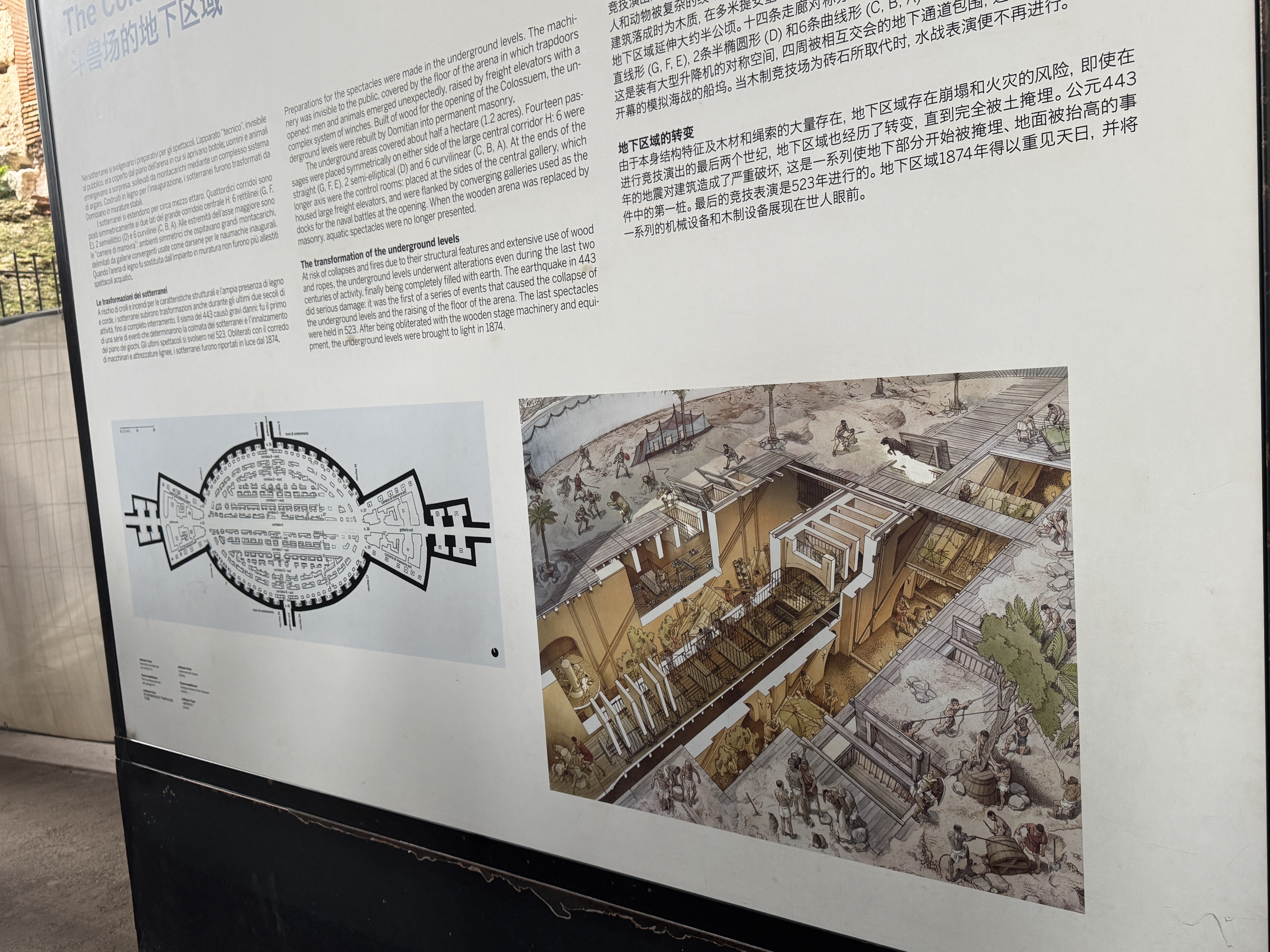 검투사나 동물을 지하에서 경기장 올리기위한 그 당시 엘리베이터도 재현되어 있다.