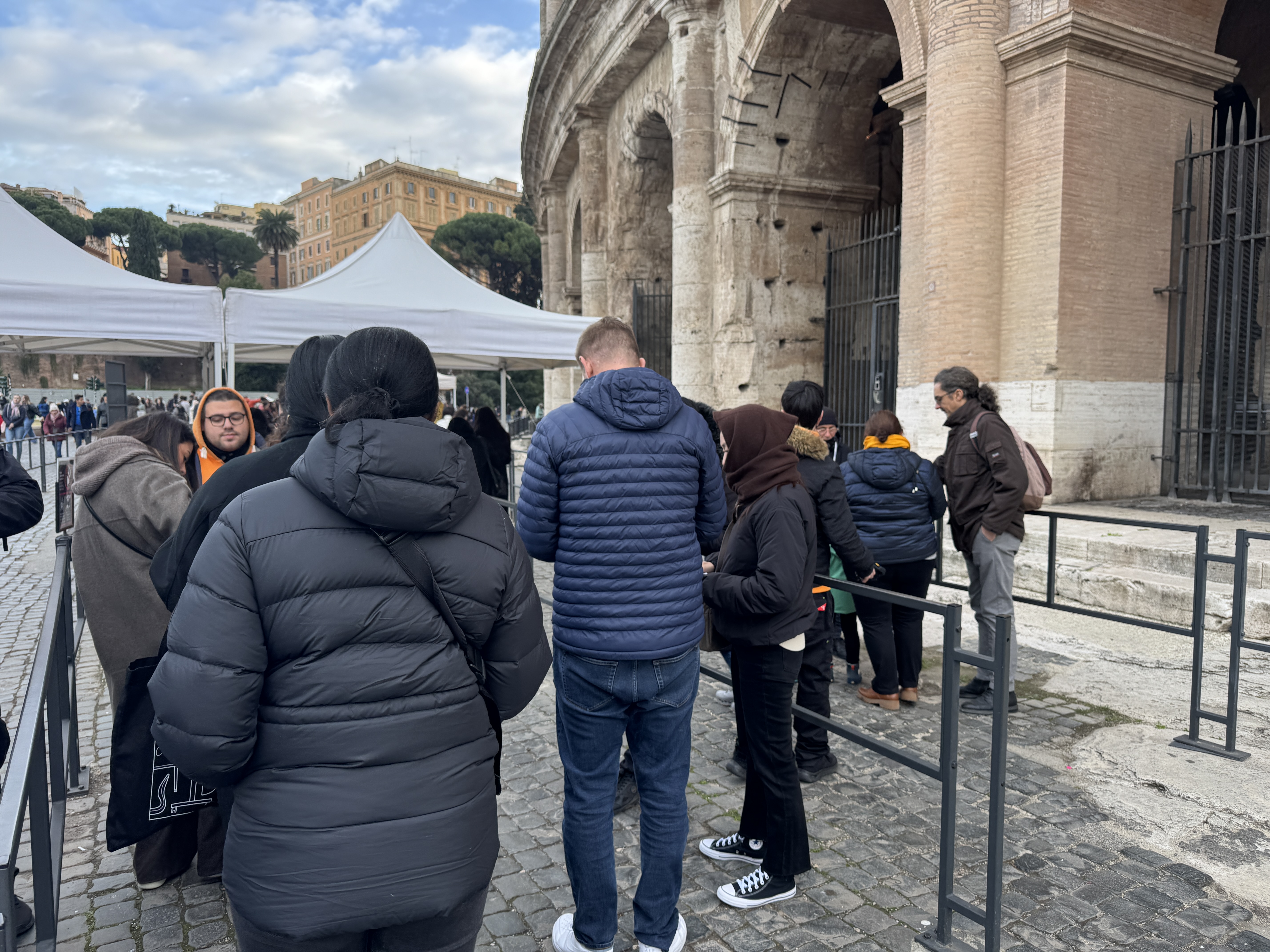 바로 뒤에 콜로세움 입장을 위해 줄을 서 있는 사람들을 볼 수 있다. 처음에는 비수기에 이정도로 줄을 서야 했지만, 입장 전이라 잠깐 줄이 긴 것일 뿐 입장시작 후 이 줄은 금방 사라졌다.