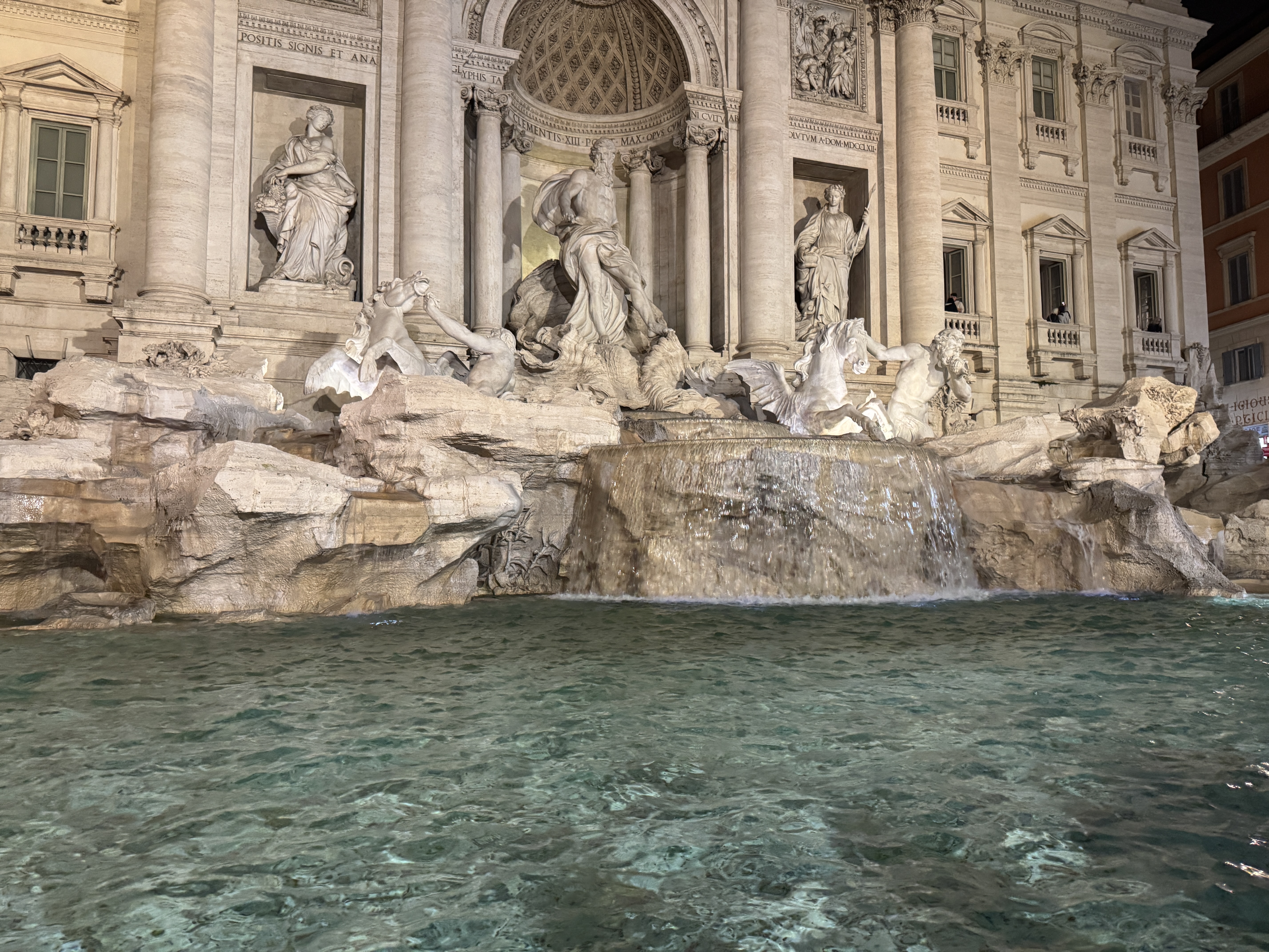저녁식사 후 다시 트레비 분수로 오니 줄이 상당히 줄어들었다. 트레비 앞쪽으로 가는 것이 무료지만 2026년 2월 경부터 유료화 된다고 한다. 워낙에 많은 사람들이 찾는 곳이라 트레비 분수 앞쪽으로 가는 것도 줄을서서 한정된 인원만 들어갈 수 있었다.