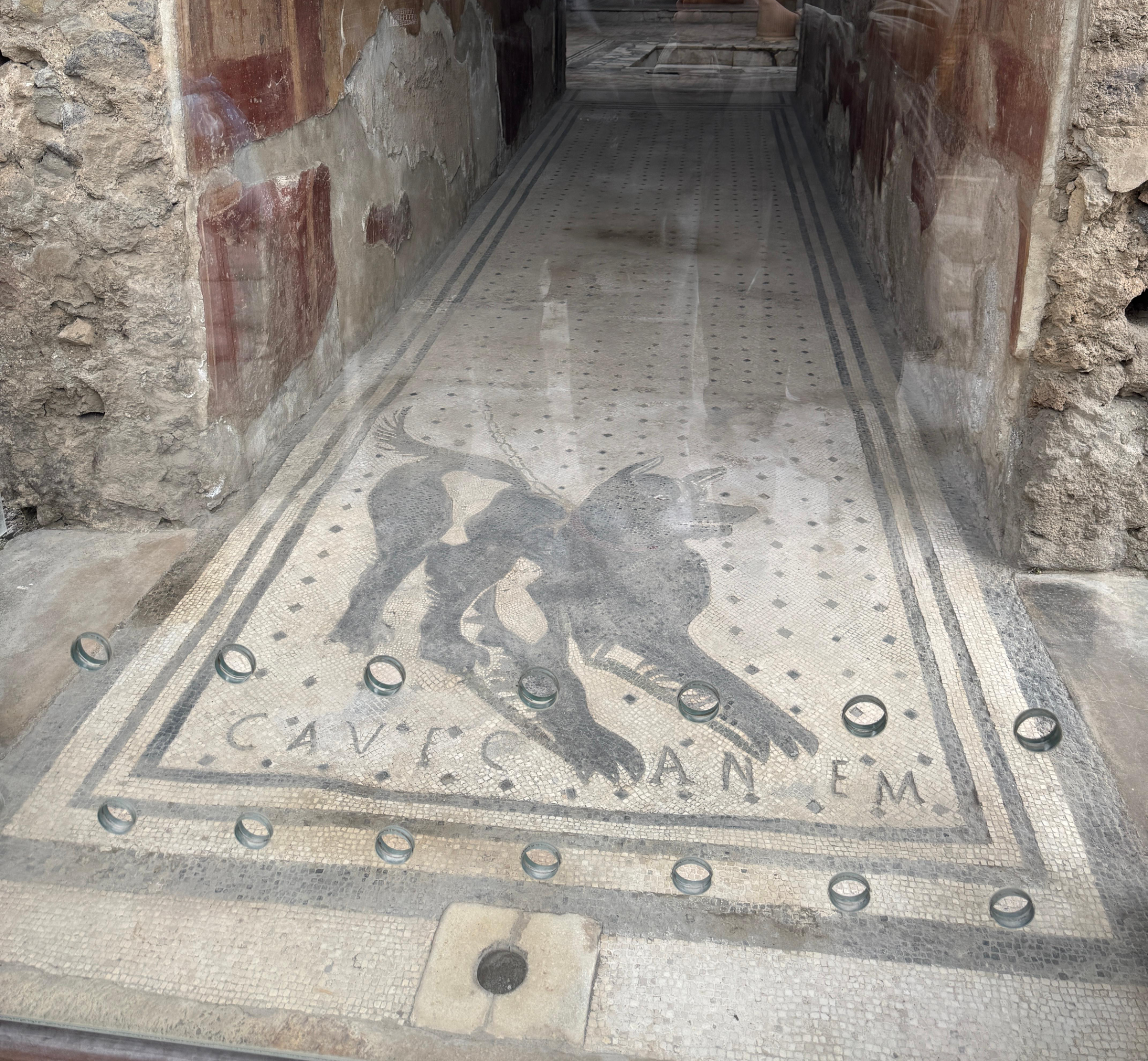 비극시의 집으로 집 입구 바닥의 개조심 모자이크 타일이 유명한 곳이다.