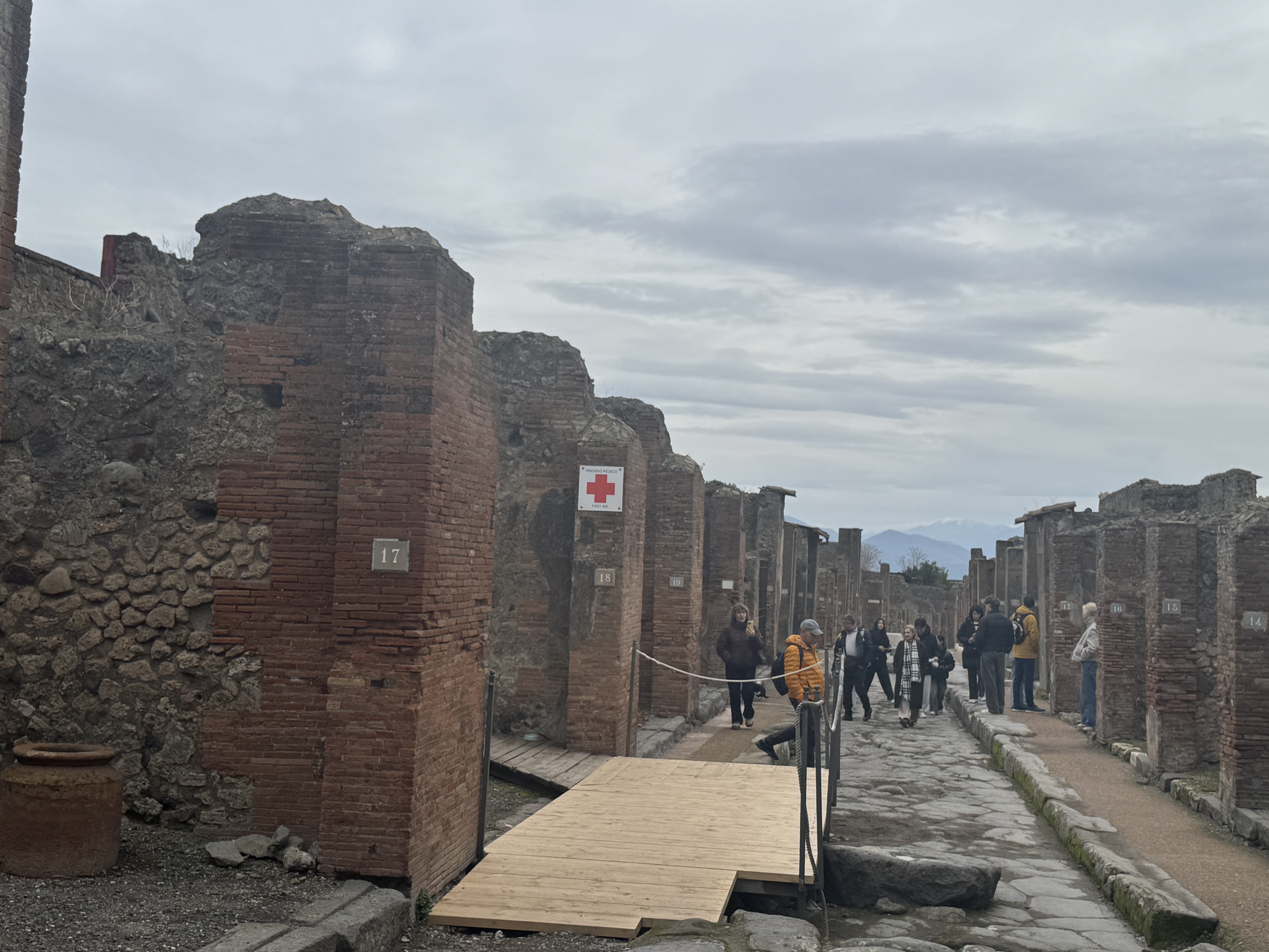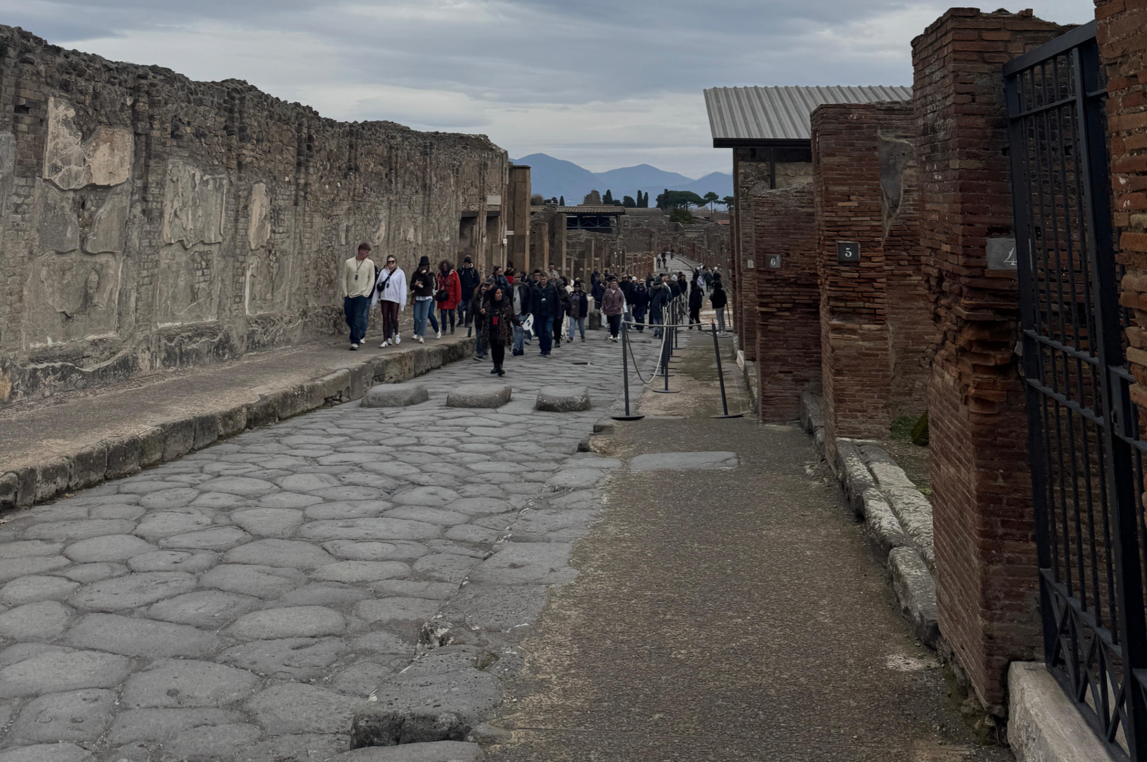 로마에서 3시간 정도 이동해서 폼페이 유적지에 도착할 수 있었다. 바티칸 투어때도 그렇고 박물관이나 유적지에서 가이드 투어시 꼭 이탈리아 현지 가이드가 한명이 꼭 붙는다. 정부에서 강제로 시행하는 것이라고 하는데, 현지인이 동행하도록해서 일자리도 늘리고 외국 관광객들에게 조금더 안정감을 주는 것 같다. 입장권을 현지 가이드가 구매하여 입장권을 받아 QR코드를 찍고 한명씩 입장했다.