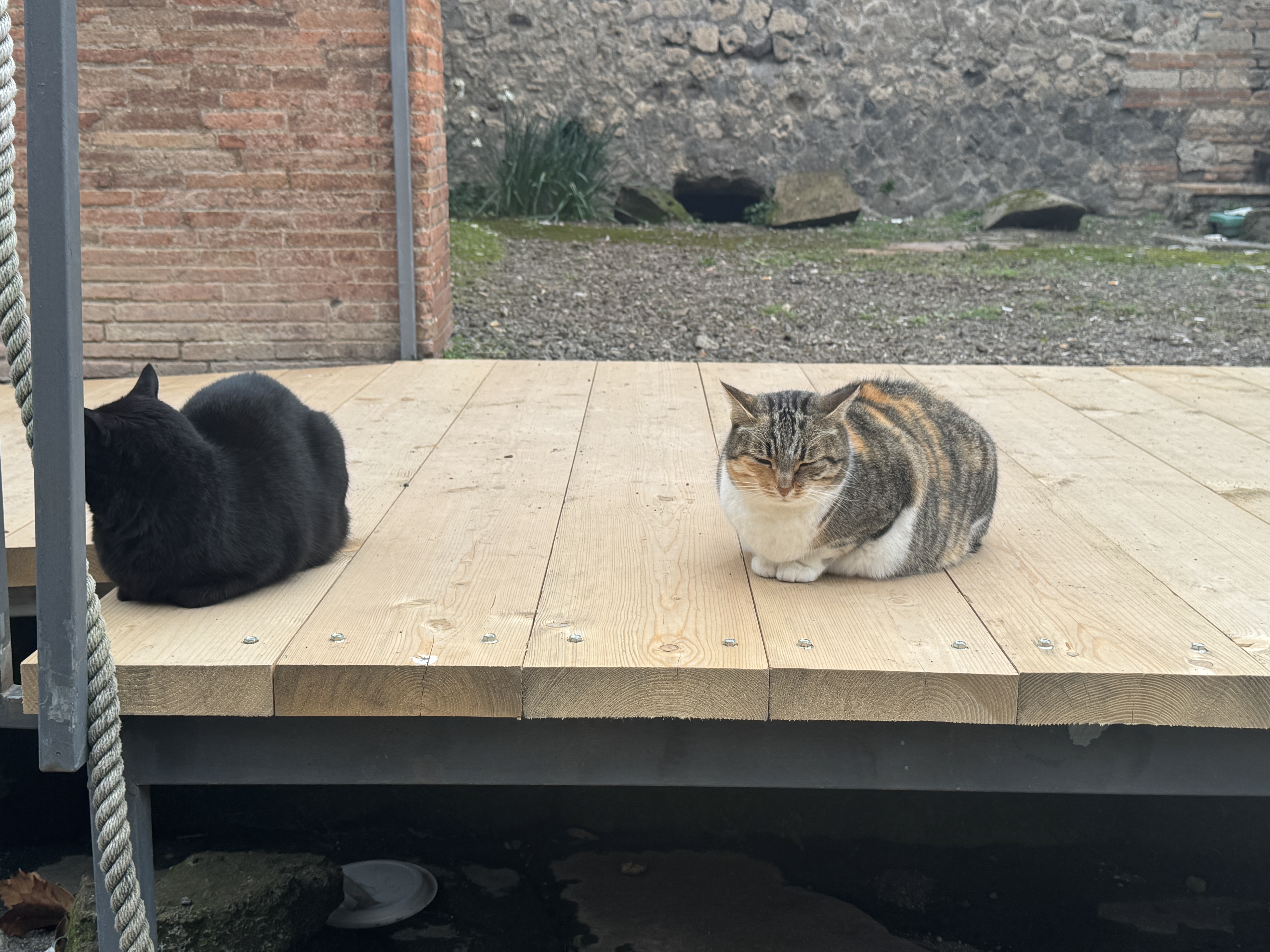 이곳 폼페이 유적지 여러 곳에 고양이들이 얌전히 앉아 햇볕을 쬐고 있다.