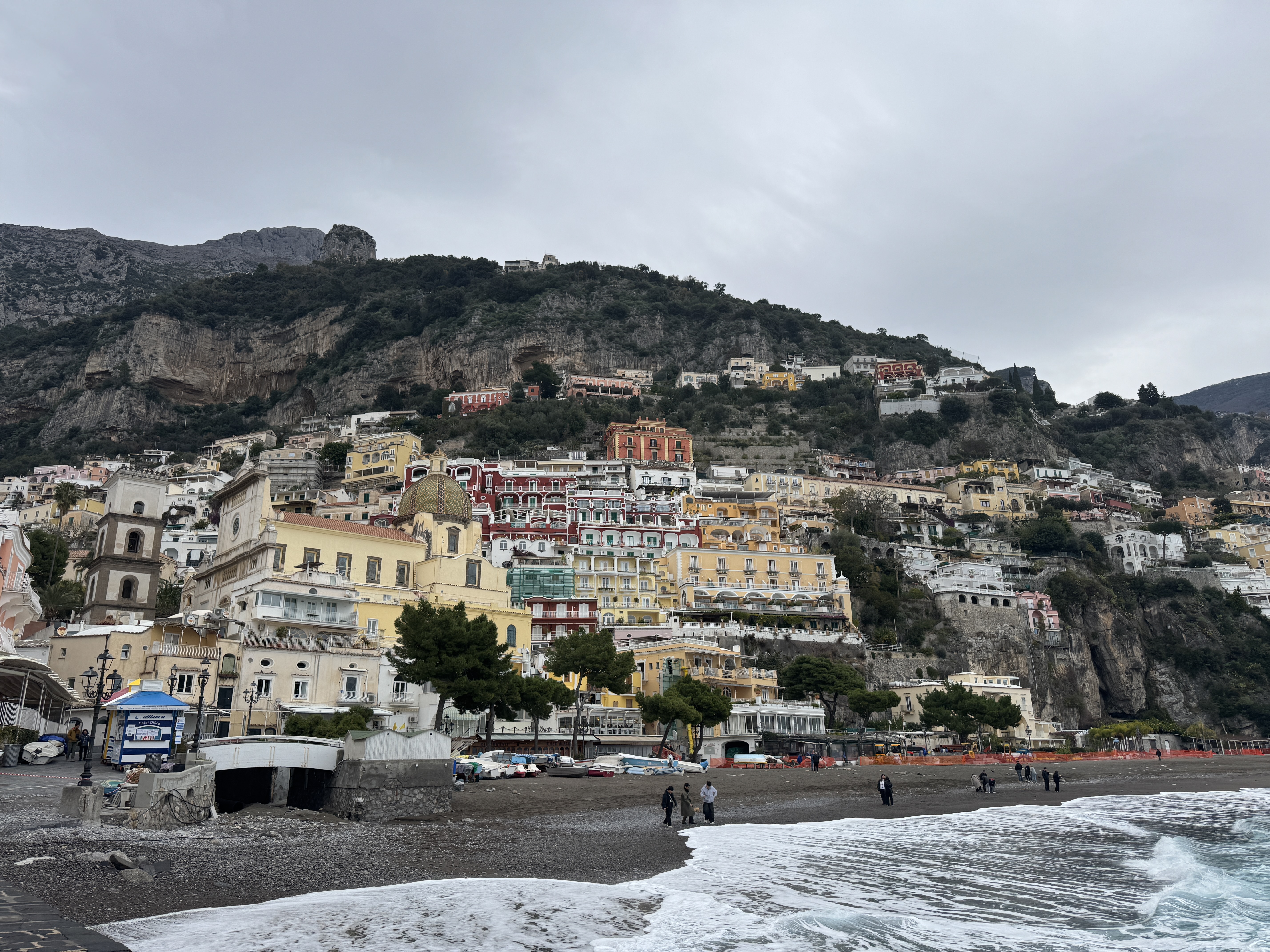 포지타노에서 봉고차에 내려서 좁은 길을 따라 해변까지 내려갔다. 비성수기라 많은 가게 들이 문을 닫은 상태이고 바다는 파도가 매우 거칠었다.