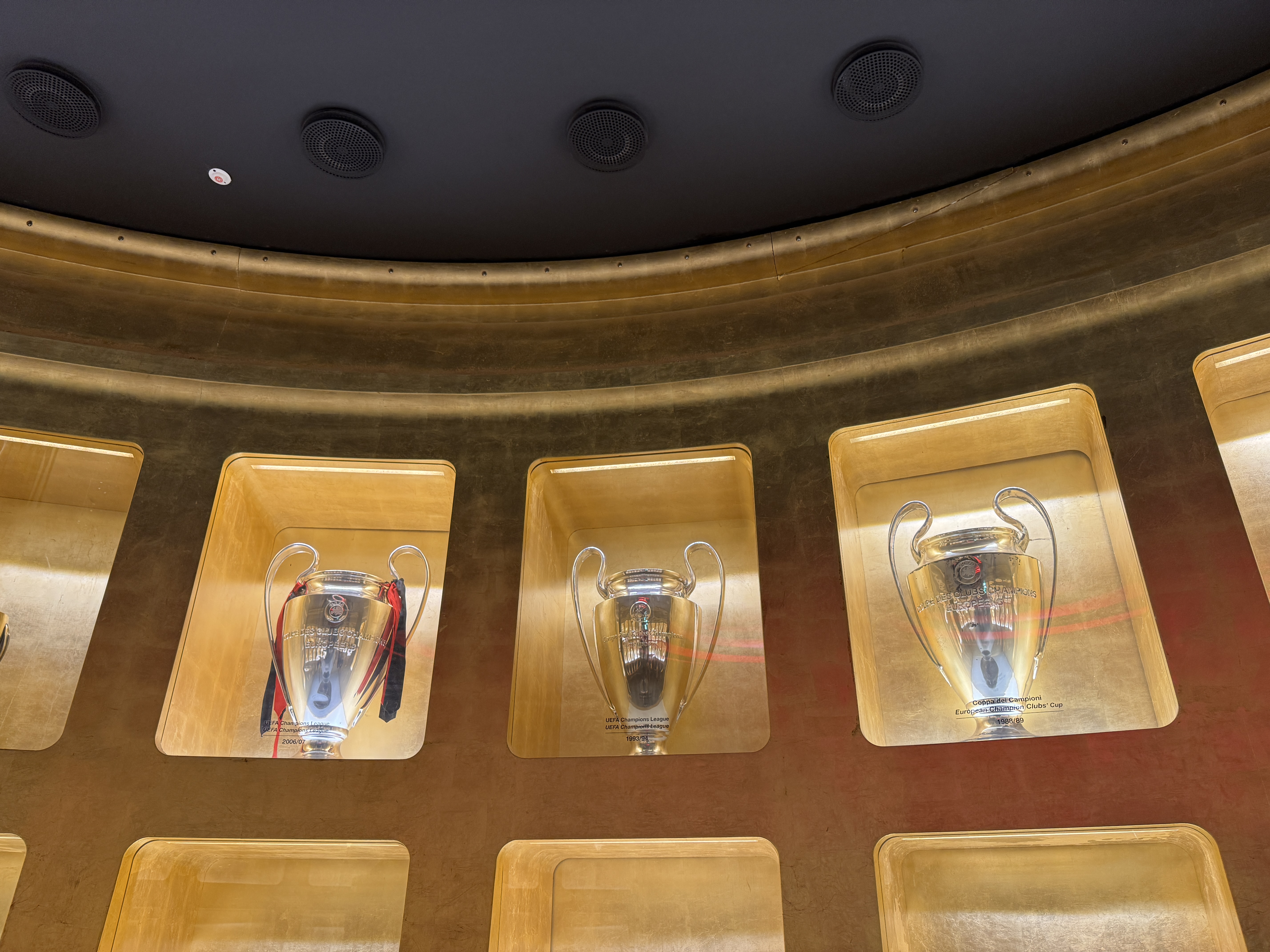 벽면에 지금가지 우승트로피들을 죽 보여주고 있다. UEFA 챔피언스리그 우승컵만 7개다 ㅎㄷㄷㄷ