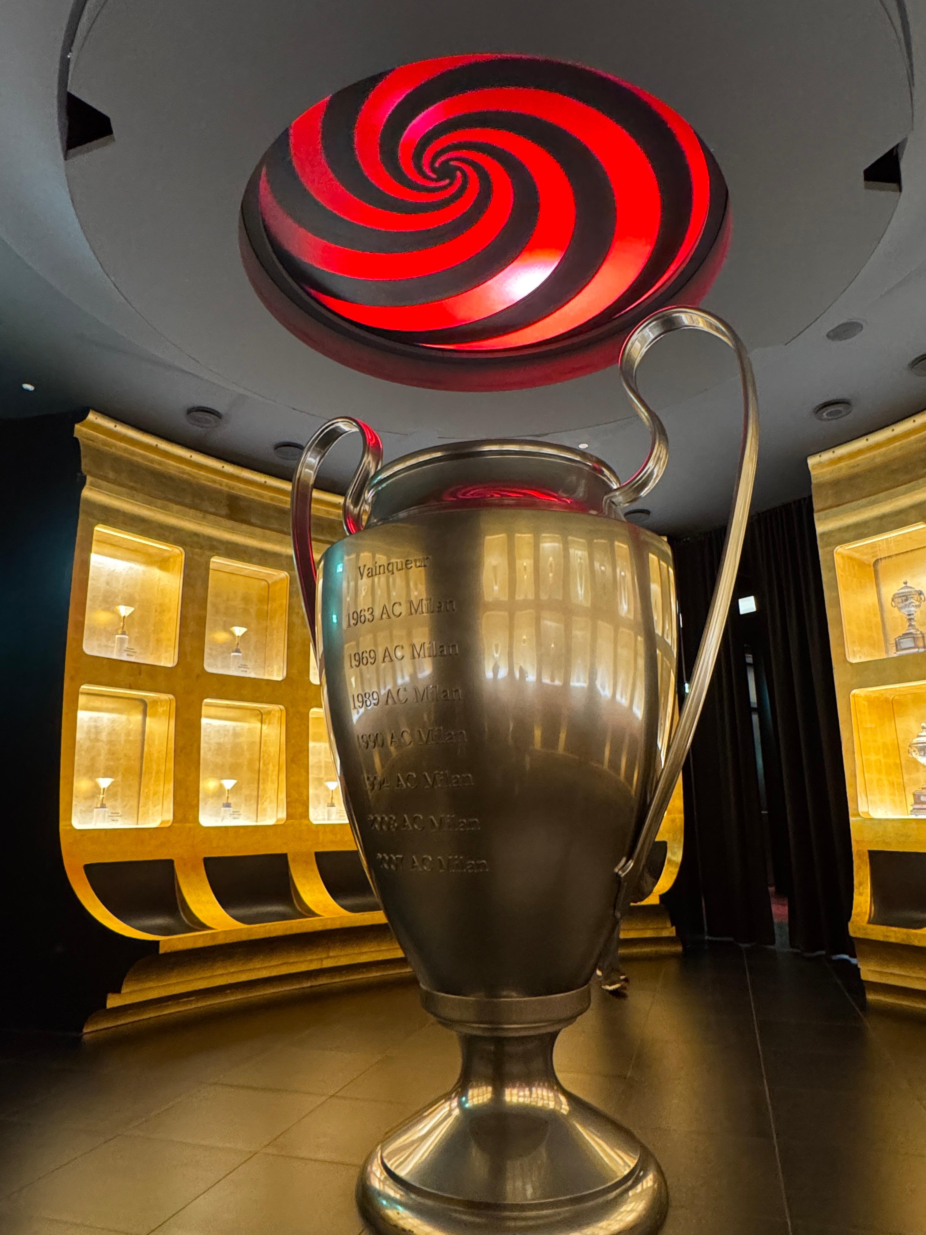 입구쪽에 대형 트로피가 있어 오래된 것인가보다 헸는데, 첫째 아이가 보더니 최근에 AC 밀란이 MONZA와 경기한 'Silvio Berlusconi Trophy'라는 컵대회에서 이겨서 받은 우승컵이라 한다.