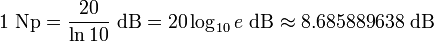 여기서 α가 Neper이다. 반면, dB로 표현되는 감쇠는 다음과 같다.