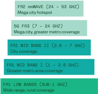 - FR2: 24.25 GHz to 52.6 GHz, mmWave